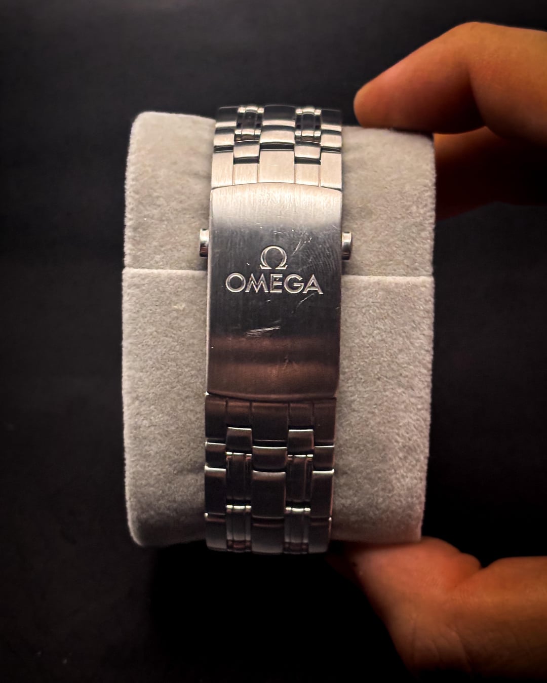 Condition — Excellent overall with light, honest wear. Stainless steel case shows minor surface scuffs and fine hairlines consistent with careful use; lugs remain sharp with no dings or deformation. Black ceramic bezel is clean with crisp numerals and minute markers, showing only light superficial wear. Sapphire crystal is clear with no chips or scratches visible. Black “007” textured dial is clean with even lume plots; hands show no corrosion or damage. Lume is strong and evenly glowing. Screw-down crown operates smoothly. Caseback and bracelet show light contact marks and hairlines consistent with normal wear; clasp has visible surface scratches but functions properly. Box & Accessories – Includes 1 additional bracelet link and eBay authenticity card. Bracelet is currently sized to fit approximately a 6.9″ wrist; with the included link installed, fits approximately 7.2″. Additional OEM links can be sourced upon request at $75 per link. Price – $3,499 shipped (Zelle / Wire preferred). Apple Pay / Venmo +15. Sales tax required for GA/IL buyers without resale certificate. Shipping – Fully insured FedEx 2-Day within 24 hours of cleared payment. Timestamp – Included in photos. Overview – Omega Seamaster Professional 300M “James Bond 007” Limited Edition (Ref. 212.30.41.20.01.005), individually numbered 06933/11007. 41mm stainless steel case with black ceramic bezel, signature “007” patterned dial, screw-down crown and helium escape valve, and 300m water resistance. Powered by Omega’s Co-Axial Chronometer automatic movement.