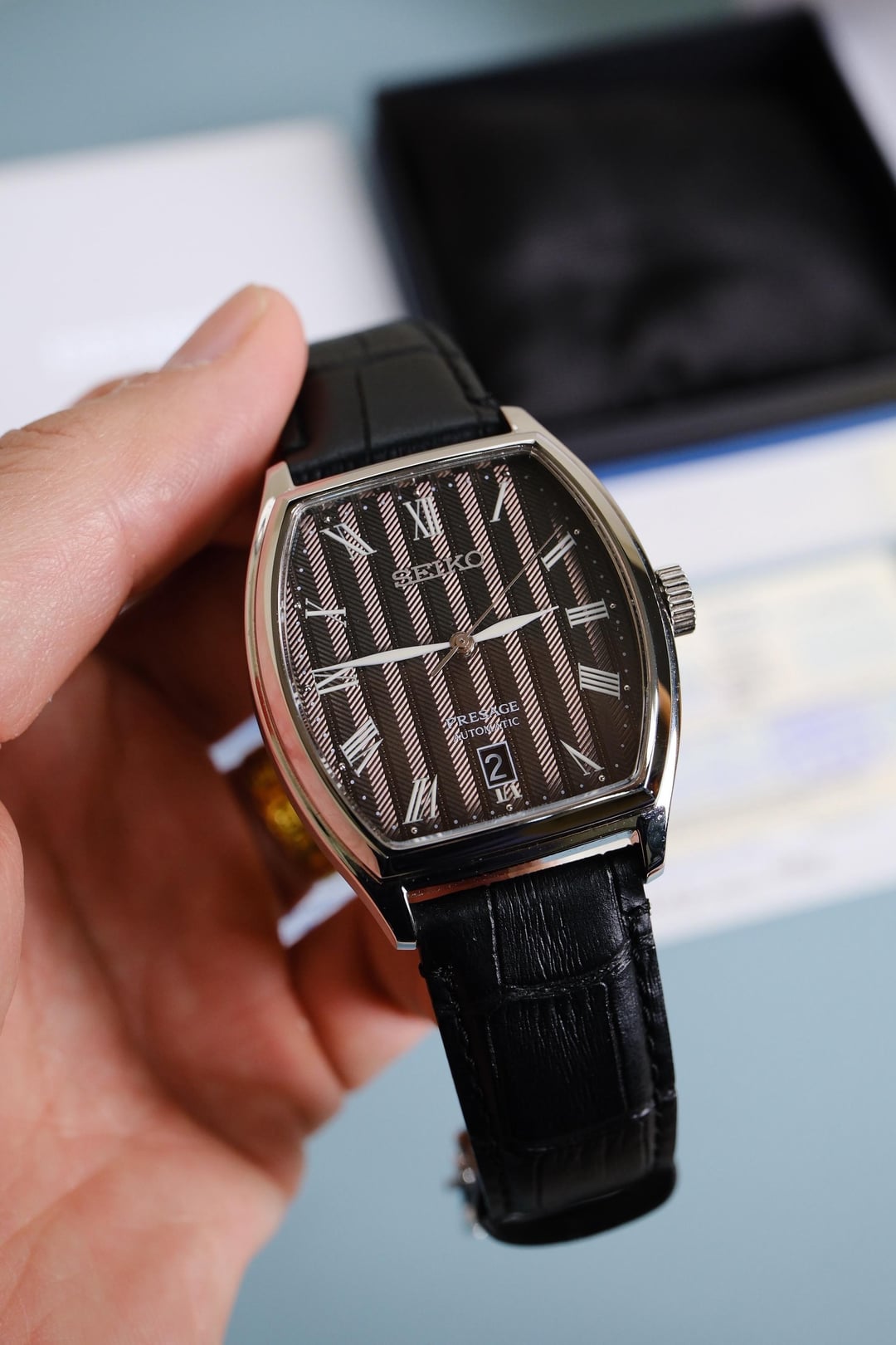 Hi R/watchexchange For sale is a Seiko Presage Automatic SARY113 ( SRPD07J1 ) featuring a unique tonneau-shaped case and an elegant black textured dial with Roman numerals. A classy dress watch with strong vintage vibes, very different from typical round Presage models. *Details: -Movement: 4R35B Automatic with 23 jewels, 21600vph, 41H power reserve. -Dial: Black -Case Size: 37mm * 46mm -Crystal: Sapphire with AR Coating -Strap: Genuine leather, Original clasp *Condition: Exellent and run well *Included: Box, papers, card *Timestamp: https://i.postimg.cc/PqtTJ1Kq/DSCF8127.jpg *Photos: https://postimg.cc/gallery/XWNwKMg *Price: $450 Shipped worldwide via UPS about 4-5 days (insured & tracking) ( tariffs/duty fee covered by me ) *Payment: PayPal FF or GS (4.6% for buyer) Let me know if you have any questions or for more pictures. Thanks for looking!
