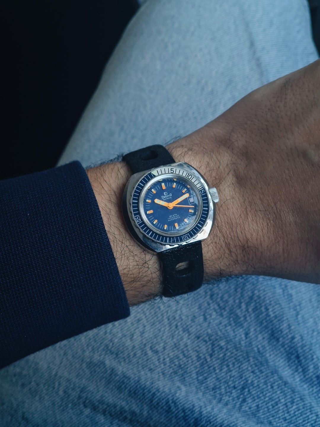 For sale is a vintage Dreffa 20 ATM diver, possibly from the 70s. It features a stainless steel case and it’s powered by a reliable A. Schild automatic movement. The watch also has an all-original blue bakelite bezel and a period-correct Tropic-signed rubber strap that further add to the vintage charm. **Details & More** **Condition:** Very good. Minor usage marks on the case. The bakelite bezel looks great for its age. It comes with a Tropic rubber strap in almost NOS condition. Please see the pictures for full condition and clarity. **Case Size:** 34.2 x 30.2mm stainless steel case with a thickness of 11.5mm and a lug width of 16mm. **Movement:** Swiss automatic movement by A. Schild (AS) in good working condition. Service history is unknown. **Price:** Asking $290. Please add $25 for worldwide shipping. Payment methods include Wise, ACH transfer, Revolut, Bitcoin (On-Chain or Lightning), or PayPal G&S for buyers with solid references. Add +7.5% for currency conversion fees on the latter. Portugal has suspended all local post shipments to the US, but I can still ship with UPS ($100). Established seller with over 220 transactions – buy with confidence! Make sure to follow me on Instagram (@daily.worn) to check out the newest additions. [Timestamp](https://imgur.com/a/sAZv0oS)