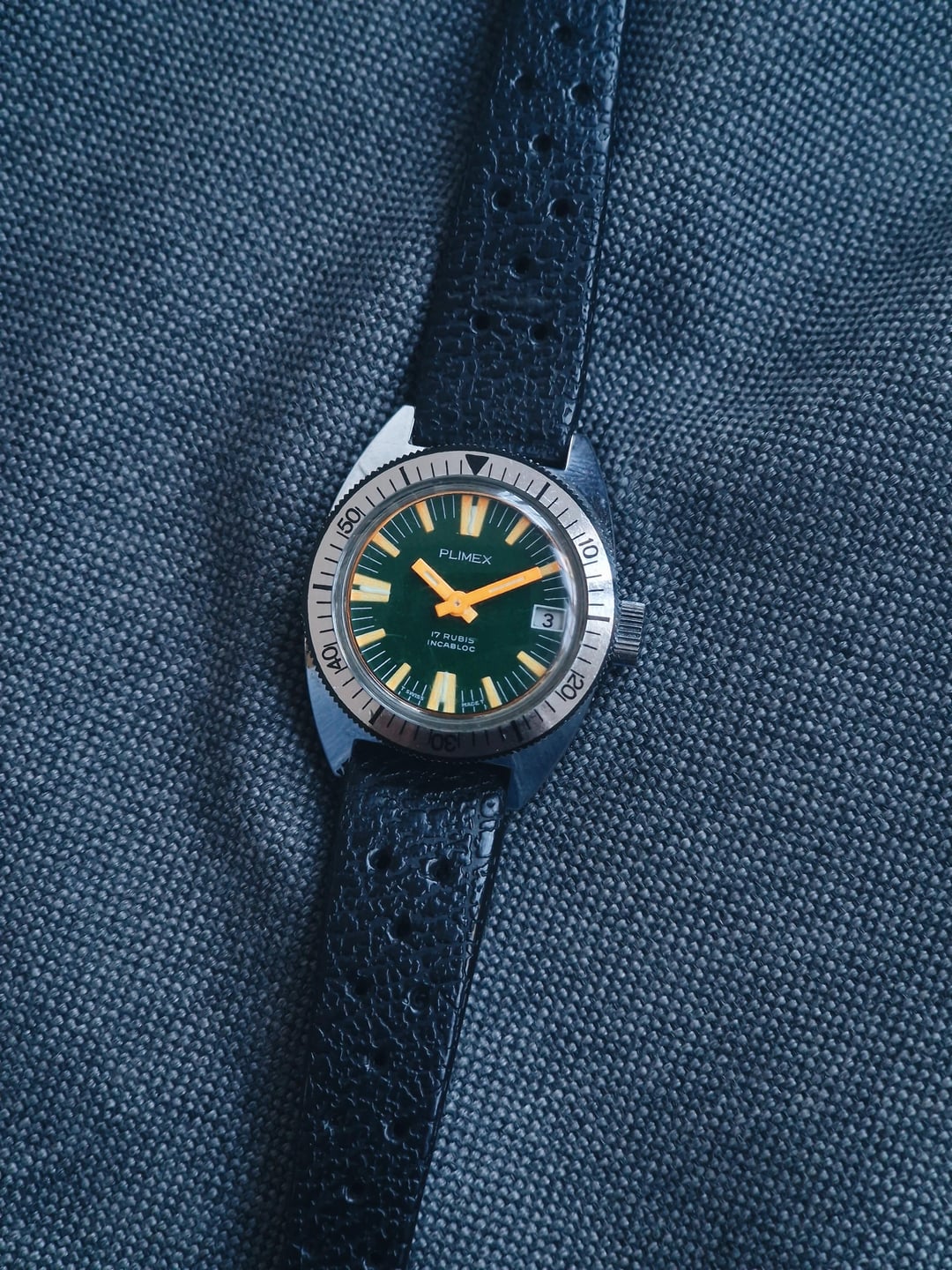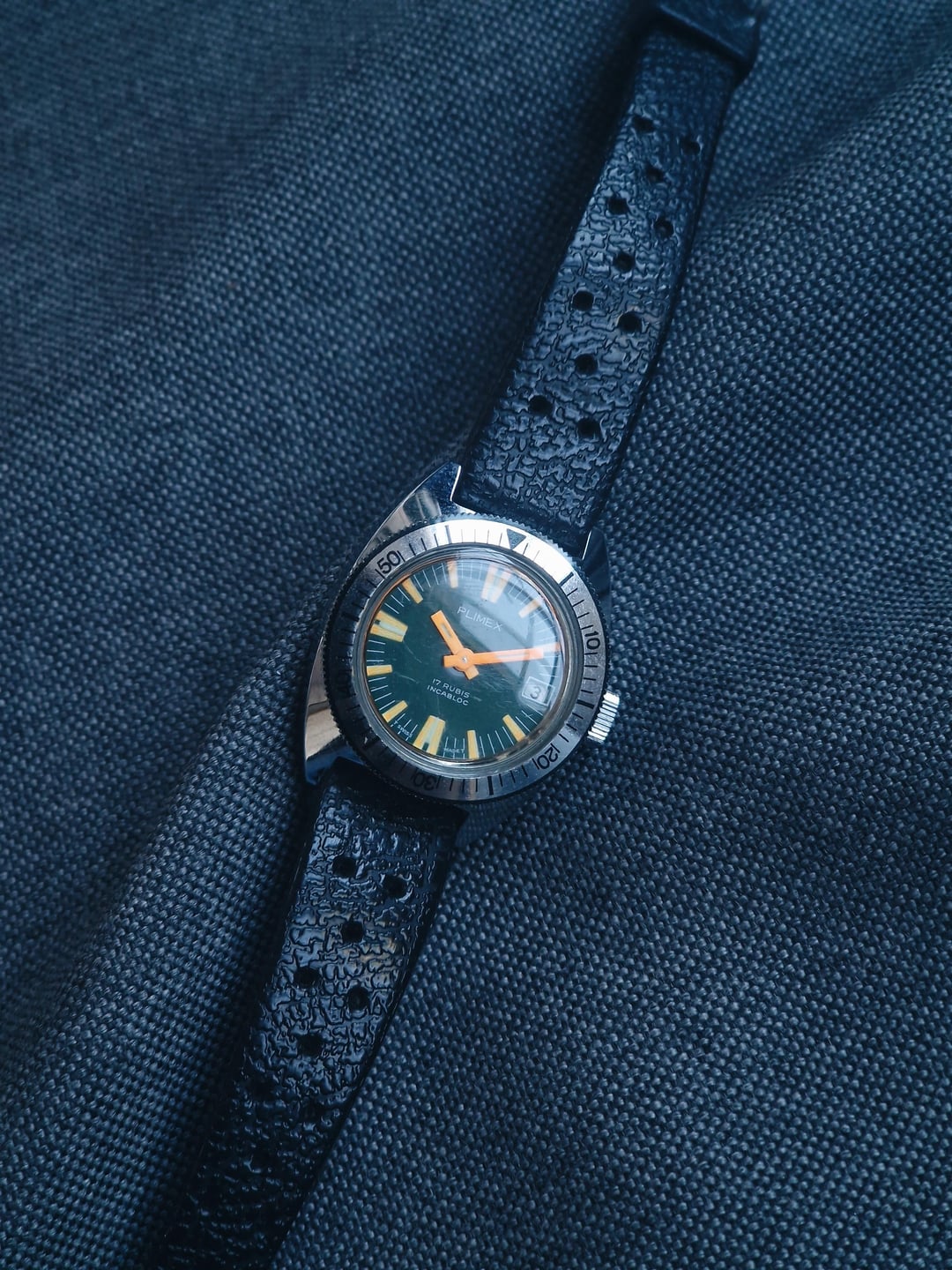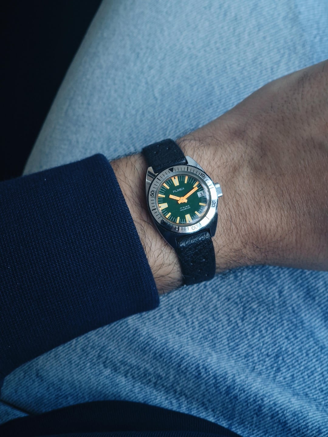 For sale is a vintage Plimex midsize diver, possibly from the 70s. It features a chrome-plated case and it’s powered by a reliable Swiss manual wind movement. The watch also has a funky green dial with orange accents that further adds to the vintage charm. **Details & More** **Condition:** Very good. Some usage marks on the case, but it still looks great for its age. Please see the pictures for full condition and clarity. **Case Size:** 26.5 x 31.7mm chrome-plated case with a thickness of 10.3mm. **Movement:** Swiss manual wind movement in good working condition. Service history is unknown. **Price:** Asking $100. Please add $20 for worldwide shipping. Payment methods include Wise, ACH transfer, Revolut, Bitcoin (On-Chain or Lightning), or PayPal G&S for buyers with solid references. Add +7.5% for currency conversion fees on the latter. Portugal has suspended all local post shipments to the US, but I can still ship with UPS ($100). Established seller with over 220 transactions – buy with confidence! Make sure to follow me on Instagram (@daily.worn) to check out the newest additions. [Timestamp](https://imgur.com/a/JLWZi9w)