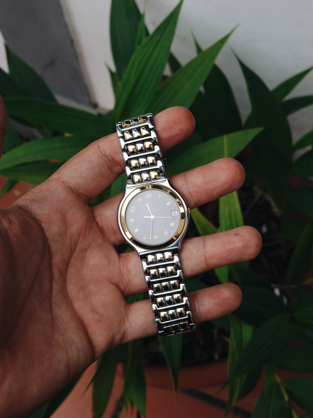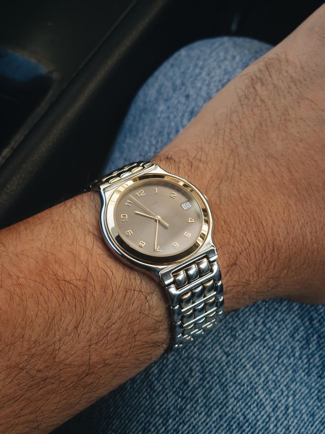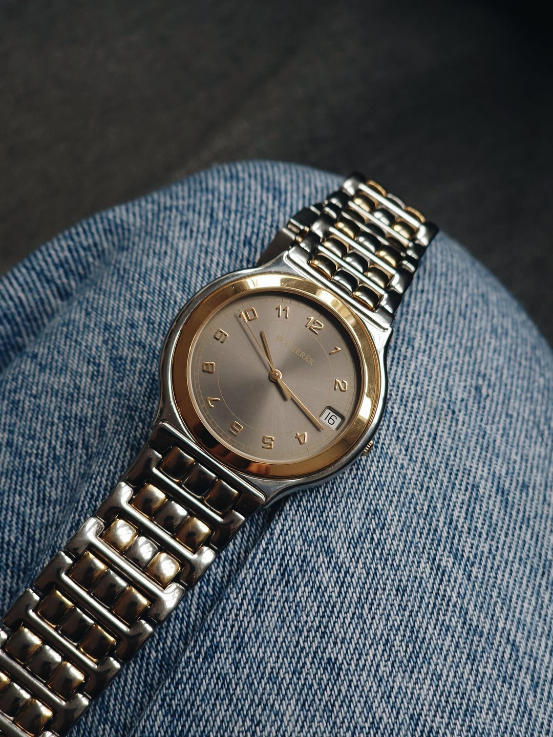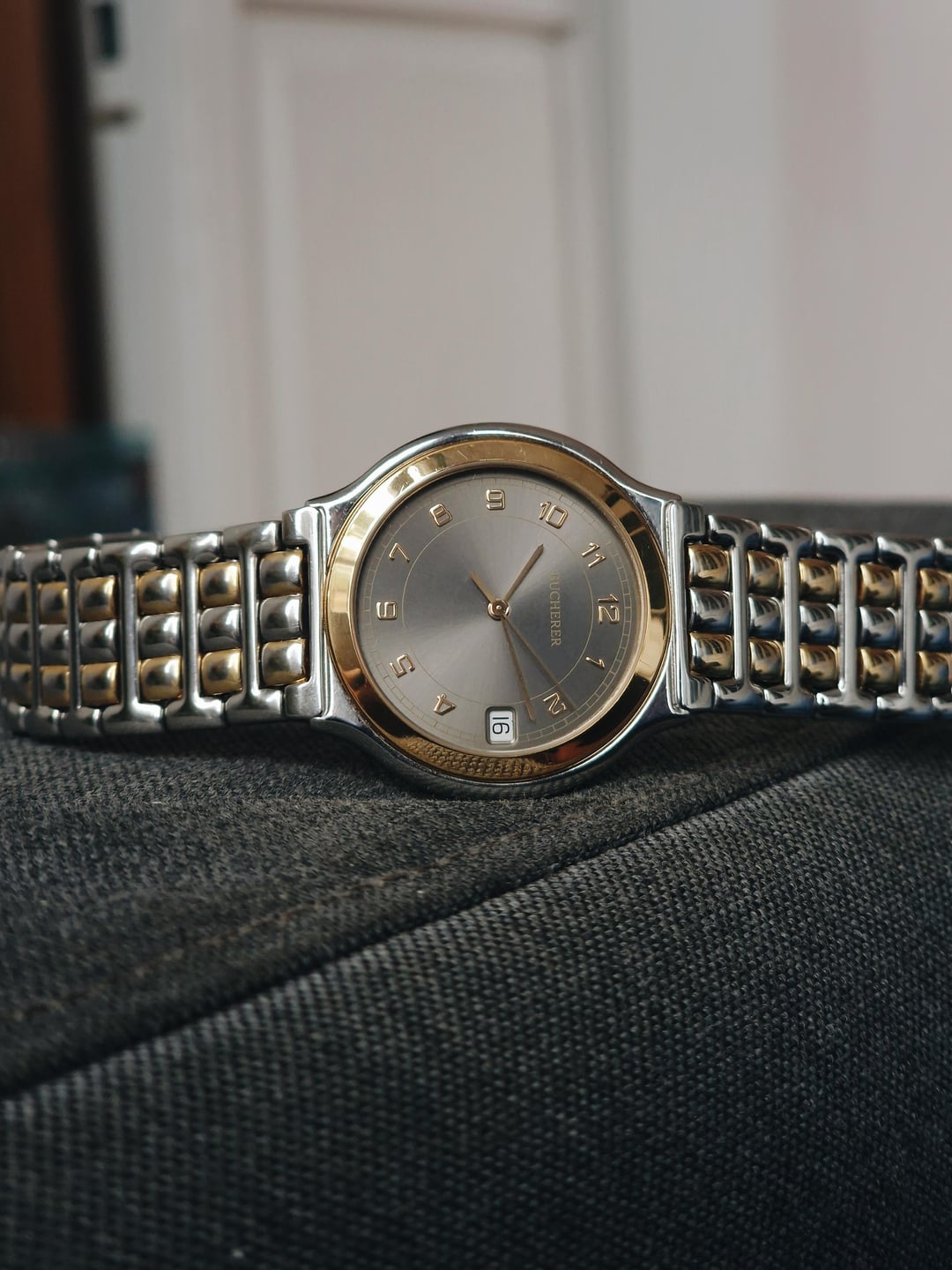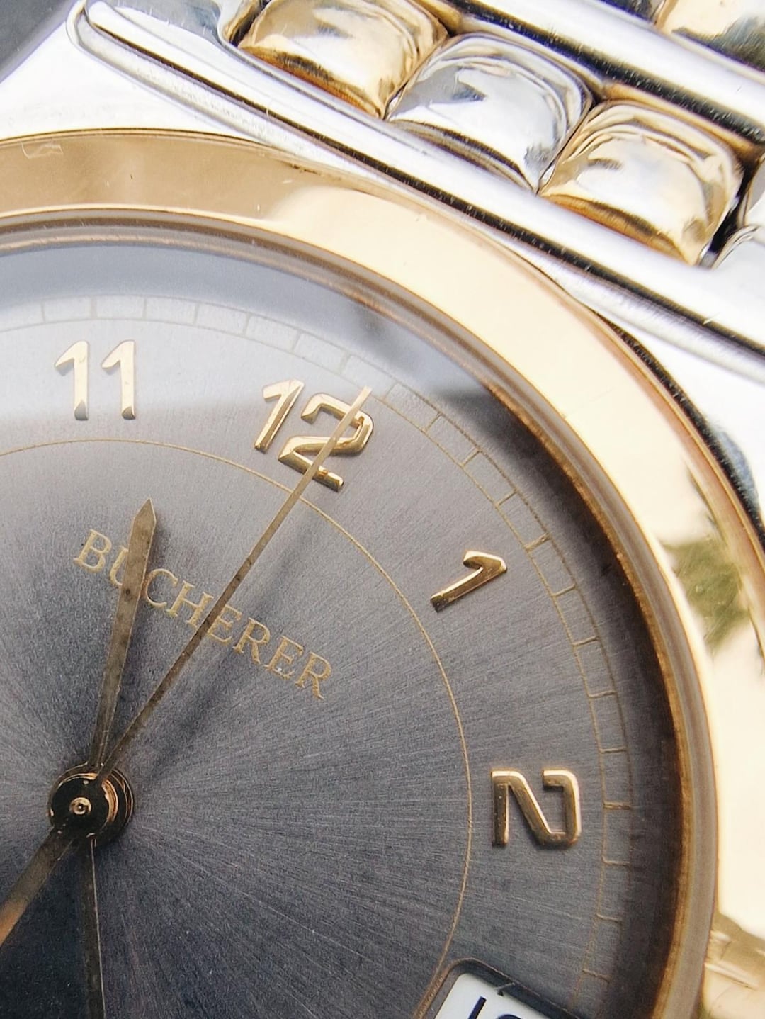 Here’s a clean, no-nonsense piece from Bucherer: the reference 955.710. A compact 34mm case in stainless steel with gold-plated accents and a grey sunburst dial gives it that classic late 80s / early 90s everyday luxury feel. The dial keeps it classic: applied indices, matching gold hands, and date at three. It comes with the original two-tone bracelet featuring gold-plated center links, sized to fit a wrist of up to 7 inches. It’s the kind of watch that works well in every situation. **Condition:** Good overall. Light marks and wear from normal use. Gold plating shows mild aging, but nothing distracting. The crystal and dial are clean. Please see the pictures for full condition and clarity. **Case Size:** 34 x 37.7mm stainless steel case with a thickness of 6.2mm and a lug width of 12.5mm. **Bracelet:** Original steel bracelet with gold-plated center links. Will fit a wrist of up 6.75 inches. **Movement:** Swiss quartz, likely ETA-based. Service history unknown, but everything works as it should. **Price:** Asking $350. Please add $25 for worldwide shipping. Payment methods include Wise, ACH transfer, Revolut, Bitcoin (On-Chain or Lightning), or PayPal G&S for buyers with solid references. Add +6% for currency conversion fees on the latter. I’m located in Portugal, but worldwide shipping isn’t an issue. Established seller with over 220 transactions – buy with confidence! Make sure to follow me on Instagram (@daily.worn) to check out the newest additions. Happy to answer serious inquiries. No trades, no lowballs. [Pictures](https://imgur.com/a/JDG0PrT) [Timestamp](https://imgur.com/a/tRJeMKZ)