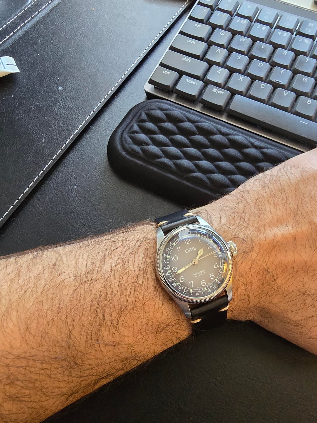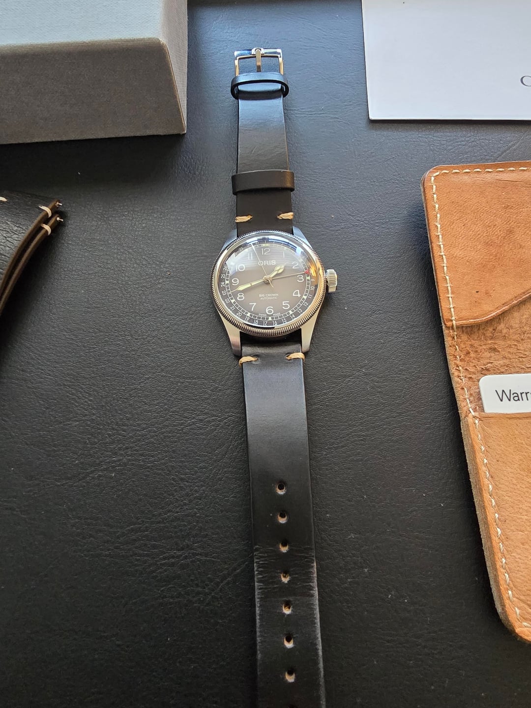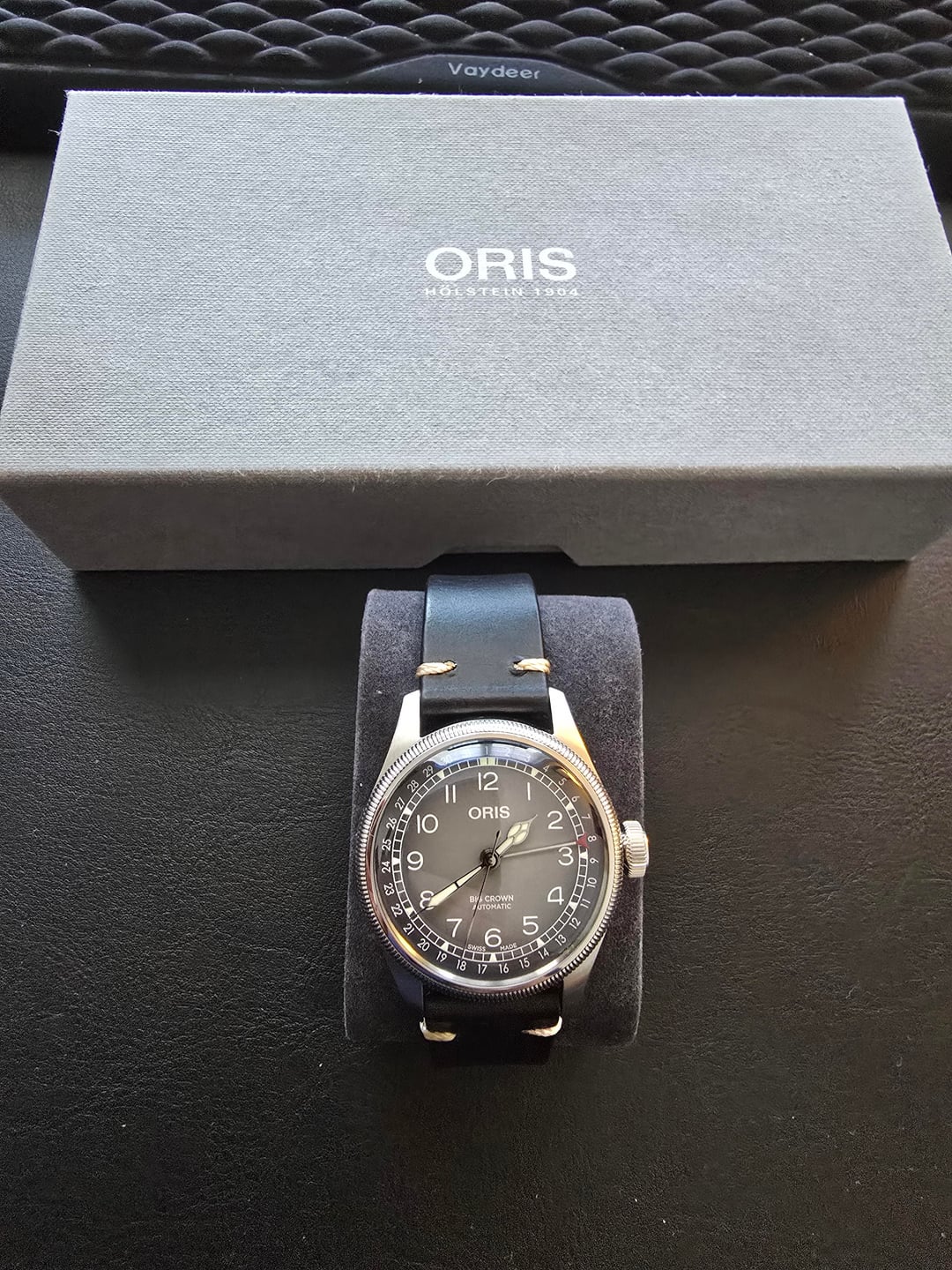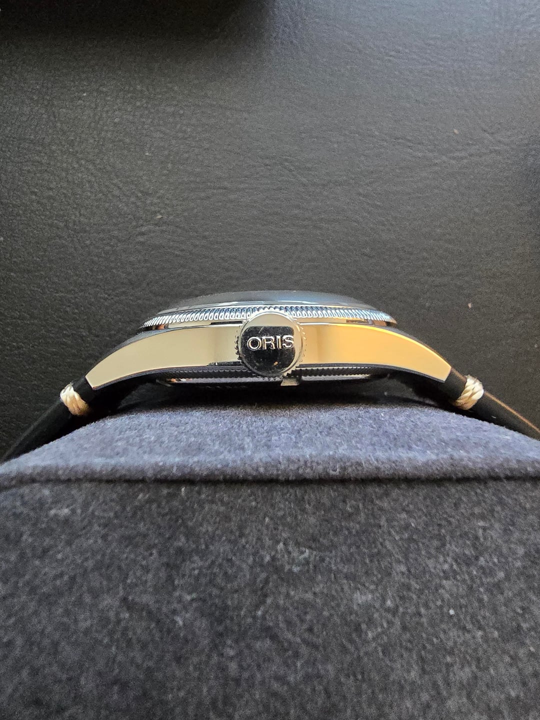 Selling an excellent / near-mint condition Oris Big Crown Pointer Date x Cervo Volante (38mm) in the highly sought-after grey dial configuration. This watch has been barely worn, functions perfectly, and presents beautifully. I’m only letting it go because an opportunity came up to purchase my grail and I need to free up funds. Condition Mint / excellent overall No issues whatsoever Crystal, case, and dial are clean Runs great. What’s Included Full box & papers Warranty card dated July 2024 Factory OEM Cervo Volante strap & buckle Black Horween leather strap (19mm) Warranty valid until July 2027 Specs Reference: 01 754 7779 4063 Case size: 38mm Thickness: ~12.5mm (including domed sapphire “bubble” crystal) Lug-to-lug: ~45mm Lug width: 19mm Movement: Oris Calibre 754 (automatic) Crown: Screw-down Water resistance: 50m Price: $1,425 USD Location: Canada/US Payment: Venmo, Zelle, PayPal G&S (buyer covers fees) / e-transfer (Canadian buyers) Shipping: Happy to ship within Canada & CONUS - I can drive across the border and ship to avoid import fees and duties (dare I say tarrifs?) Wearability Extremely comfortable on wrist with classic Big Crown proportions. The domed sapphire and pointer date complication give it tons of character while remaining very versatile. More product details can be found on the website: https://www.oris.ch/en-CA/product/watch/big-crown/big-crown-pointer-date/01-754-7779-4063-Set