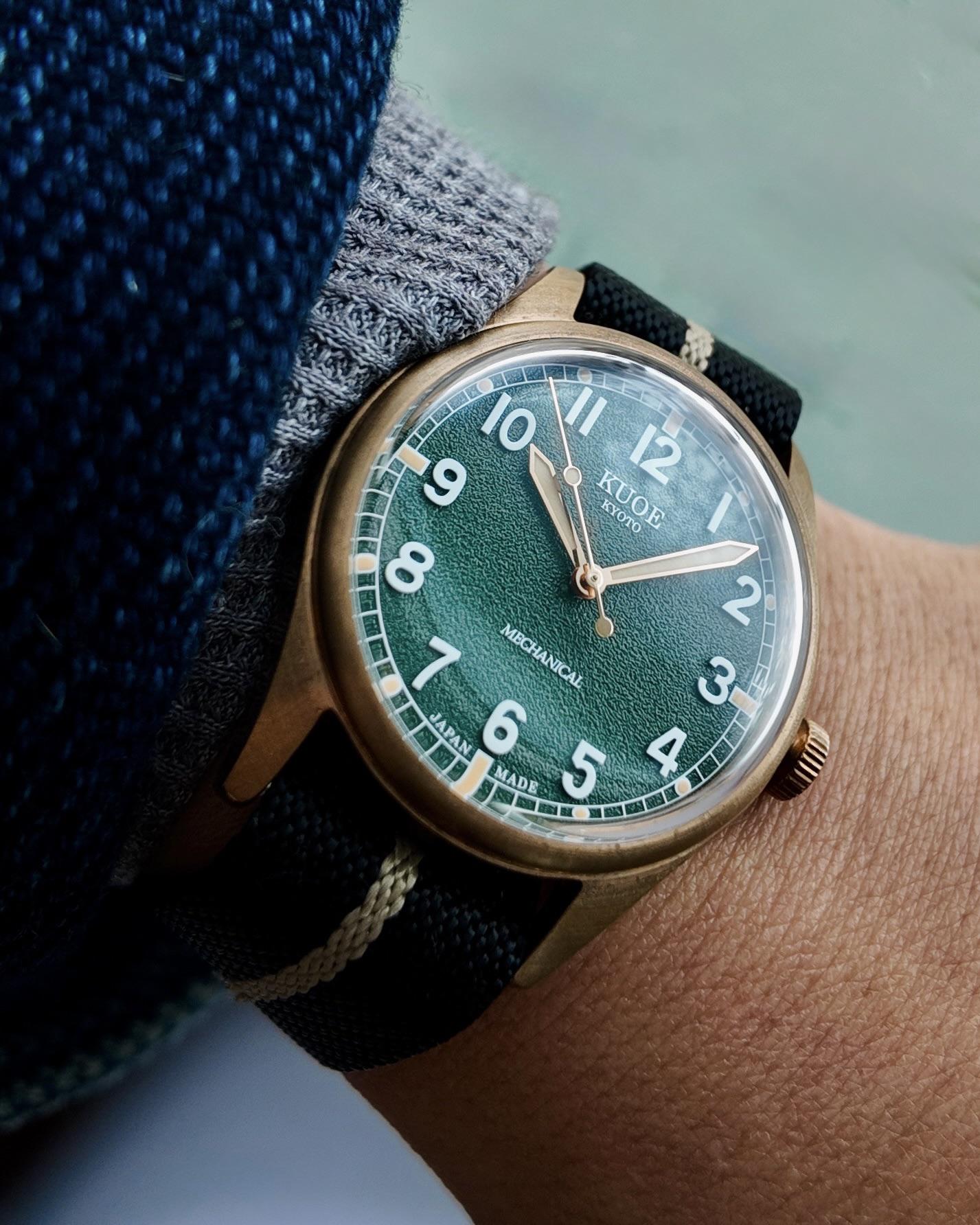 Kuoe Kyoto Bronze OLD SMITH 90-002 38mm KUOE was established in the historic Japanese city of Kyoto in 2020. This brand was founded with the vision of releasing modern watches that maintain classic designs made in Japan. The OLD SMITH 90-002 is a classic field watch inspired by British military watches from the 1940s-1970s. This is their Limited edition green dial, boutique-exclusive color Overall, this is a clean watch with minimal signs of wear. _________________________________________________ • Pix timestamp Album: https://imgur.com/a/ItCEEfv • Specifications: 38mm case powered by an automatic NH38 • Box and papers: Full set with warranty card stamped 5/21/2025 Strap: Kuoe with signed buckle _________________________________________________ __________________________________________ * video is the best way to view the watch if in-person test drive is not available. Due to the different characteristic of the cameras and gadgets used, the color of the watch you purchase may not be the same as shown on this website or on our Instagram. * will consider trades that make sense but please consider time, shipping, and trade value—not market. * local special: can possibly accommodate at ButterScotch in Downtown Long Beach by appointment * All sales final unless the watch is misrepresented or lost in transit (always fully insured) * Link to [feedback here](https://www.reddit.com/r/WatchExchangeFeedback/search?q=soycowboy&restrict_sr=1&sort=new) & [watchcharts here](https://watchcharts.com/repcheck/user/soycowboy?source=reddit&type=feedback) * Asking a *negotiable* **$555** via Zelle, venmo, or possibly PayPal Friends & Family with super strong references or if I know you. Price includes fully insured Fedex shipping in the USA— hand delivery in most of the Los Angeles or Orange County areas with drinks or coffee on me ;). Cheers, Stephen