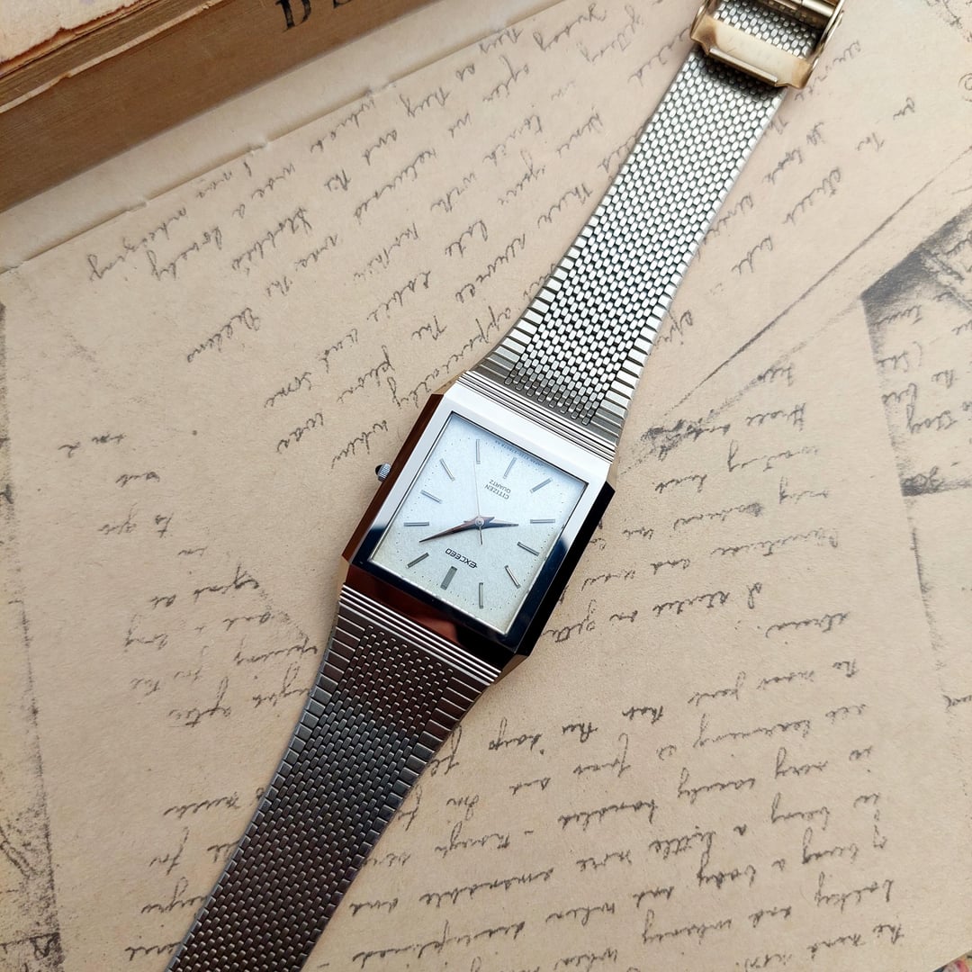 Up for sale a beauriful Citizen exceed Golden textured dial, the watch feature with Ultra Hard Alloy Gold case material which it has scratch-resistant case, high-hardness case that was designed to maintain a mirror-like polish for decades, far outperforming standard stainless steel of that era. The watch comes with original bracelet fit up to wrist size 20 cm / 7.87 inch New battery installed and it's running perfectly fine Ref No : 2730-271874K, Case : UHAG Glass : Sapphire Year : 80's Case Size : 28 mm incld crown Lug to Lug : 34 mm, Thickness : 5 mm, Lug Width : 18 mm, The watch running accurately with all function works normally Looking to get USD 199 (Included worldwide shipping fee) Payment via Paypal F&F and G&S + 4.8%. Video of watch : https://www.instagram.com/reel/DTDjCeoj8Lg/?igsh=MTN3aG9zMWVzaXZlZg== for more collcetion please follow my instagram: https://www.instagram.com/lougeposh/ Please COMMENT FIRST before sending me a pm or chat. Tracking number (Airwaybill) will available within 3 days once payment confirmed. Payment via Paypal.
