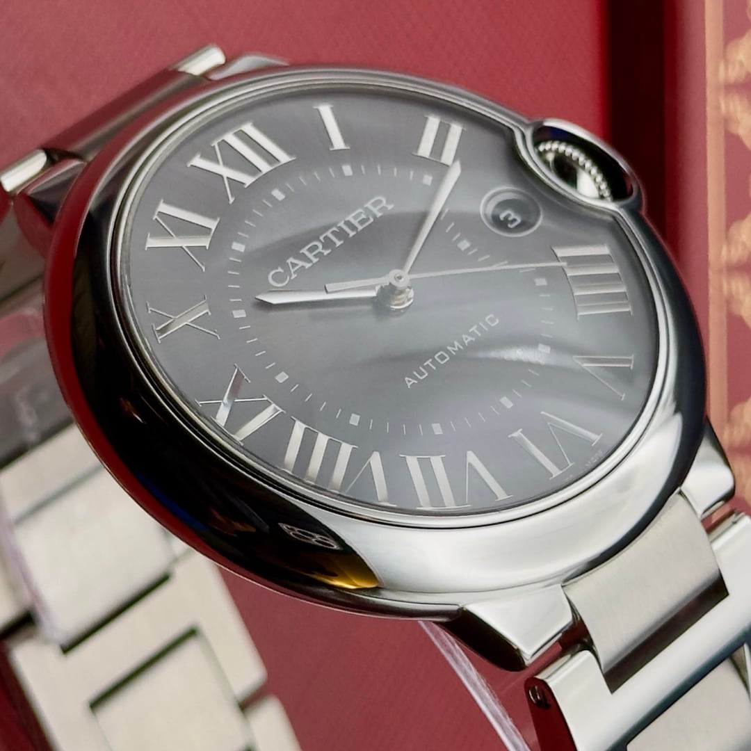 Ballon Bleu de Cartier 40mm – Gray Dial Reference: wsbb0060 Elegant, refined, and instantly recognizable, the Ballon Bleu de Cartier is one of Cartier’s most celebrated modern designs. With its perfectly rounded case and signature crown guarded by a blue sapphire cabochon, the Ballon Bleu blends classic French elegance with everyday versatility. This 40mm stainless steel version features a sophisticated gray sunburst dial with Cartier’s iconic Roman numerals and polished steel hands for a clean, contemporary look. The curved case and integrated crown create a smooth, comfortable fit on the wrist, making it an ideal daily luxury watch that transitions effortlessly from casual to formal settings. Powered by a reliable automatic movement and finished on a stainless steel bracelet, the Ballon Bleu remains a timeless staple in any collection—understated, luxurious, and unmistakably Cartier. Key Details & Specifications * Brand: Cartier * Model: Ballon Bleu de Cartier * Reference: wsbb0060 * Case Size: 40mm * Case Material: Stainless Steel * Dial: Gray * Hands: Polished steel * Crown: Blue sapphire cabochon * Movement: Automatic * Crystal: Sapphire * Water Resistance: 30 meters * Bracelet: Stainless steel with folding clasp This watch presents in excellent condition with little to no signs of wear. The factory international warranty has been extended until 12/2029 Includes: Inner/Outer Box, Warranty Card, Watch MSRP:$7950 Asking $5847 Condition & Authenticity The watch presents in excellent condition, with light signs of wear consistent with careful ownership. Please reference the photos for the most accurate representation of condition. All watches are 100% authentic and thoroughly inspected prior to listing. Seller Confidence Buy with confidence from a trusted, vetted watch dealer with extensive transaction history and 100% 5-star feedback across platforms. I pride myself on smooth, transparent transactions and exceptional customer service. A buy-back program is available on all pieces.