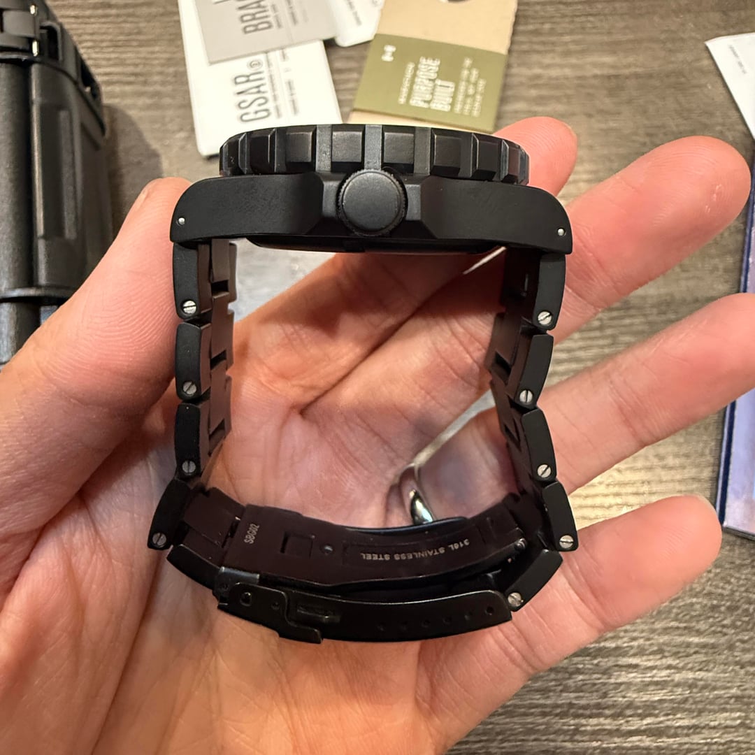 Listing here is my Marathon GSAR 41mm Anthracite (black out) version. If you like Marathon watches for their rugged build, and wants a more tactical/subdued finishing, this watch is for you. Watch is in good condition with minor wear signs. I did my best to photograph all of the imperfection. The finishing does an amazing job hiding wear signs. Bezel has a small ding at 11 minute mark, and a black spot on the 12 o’clock lume. Crystal is clean. I switched out the original butterfly clasp with an aftermarket divers clasp because I prefer the extra security. Original clasp and extra bracelet links will be included. Movement is going strong with great time keeping. I’m asking $1200 shipped for this watch. I will accept Paypal, Venmo, Apple Pay, Zelle. Buyer responsible for good & service/transaction fee. I’m happy to hop on a video call with any serious buyer to show the watch. Thank you!