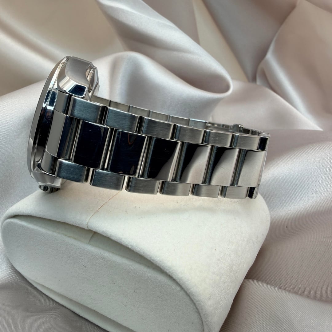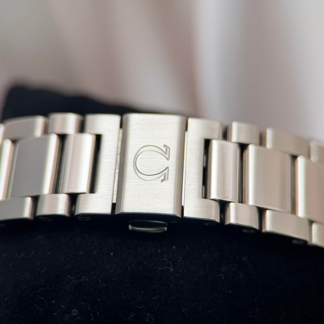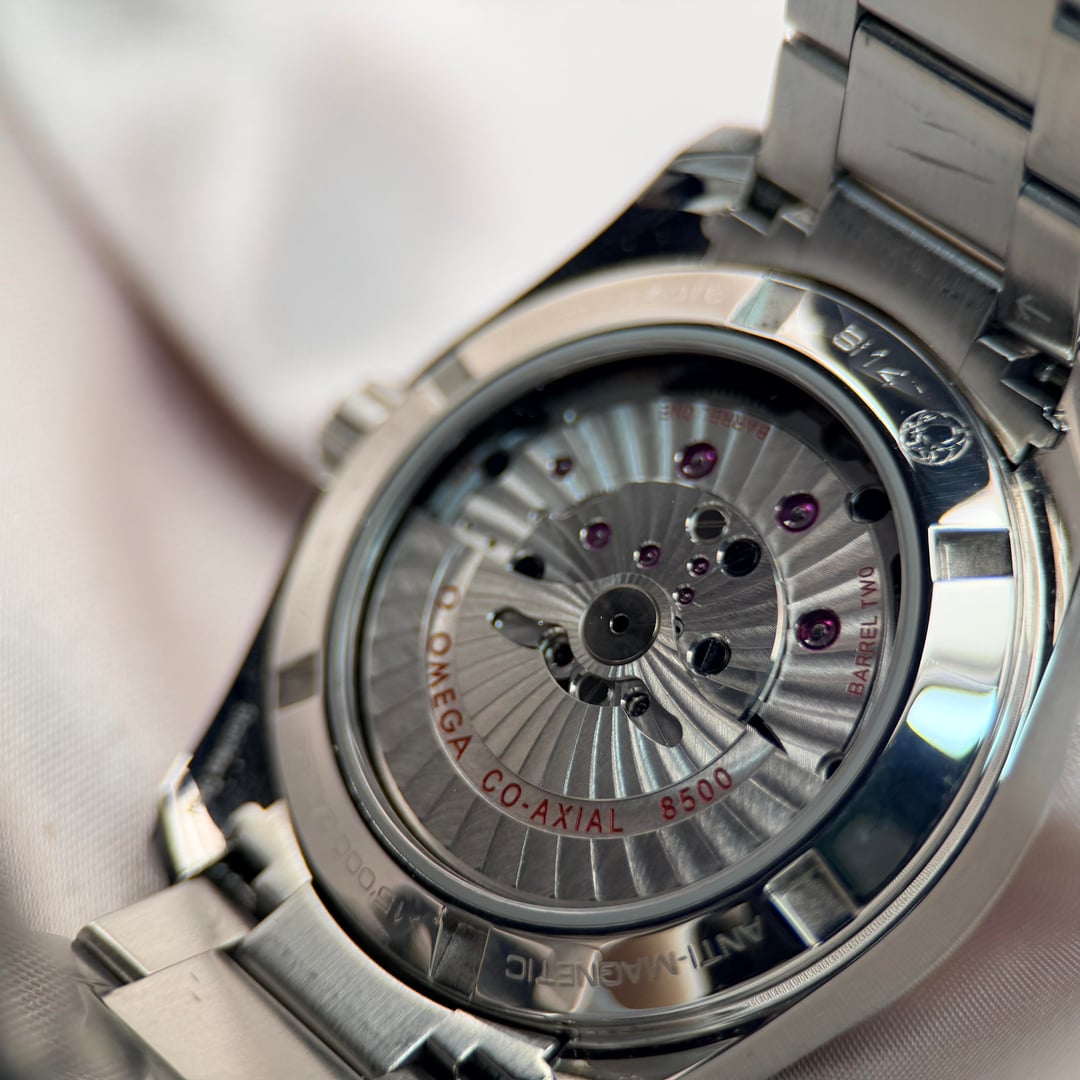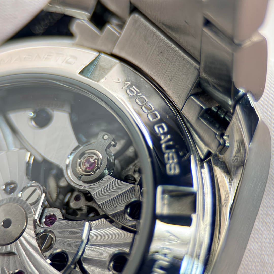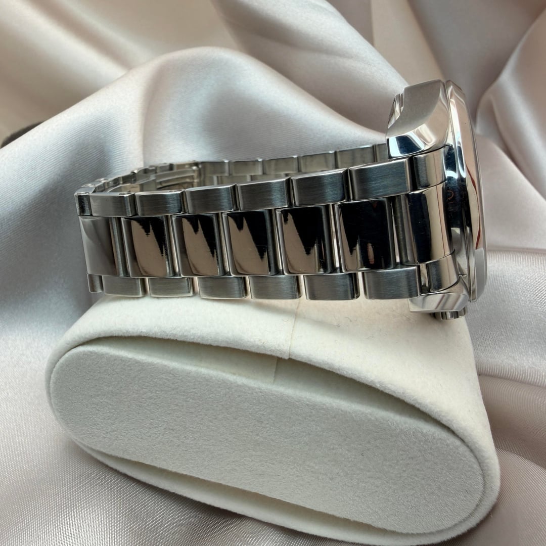 Omega Seamaster Aqua Terra 150M 38.5mm | 2023 Full Set Silver-white teak-pattern dial with solid 18K rose gold hands and applied indexes . Ref. 231.13.39.21.02.003 – Master Co-Axial Cal. 8500 - Fitted with OEM Bracelet instead of Strap Price : 4890 Offered here is a beautifully proportioned Omega Seamaster Aqua Terra 150M in the highly sought-after 38.5mm case, powered by Omega’s in-house Master Co-Axial Caliber 8500. This example is a 2023 full set, presented in excellent condition. The watch features a silver-white teak-pattern dial with solid 18K rose gold hands and applied indexes, delivering a refined yet sporty aesthetic that defines the Aqua Terra line. Originally delivered on a leather strap, this piece is now fitted with an original Omega stainless steel bracelet, offering superior versatility and everyday wearability. Movement & Technical Highlights At the heart of the watch is the Omega Master Co-Axial Caliber 8500, a major upgrade over earlier ETA-based movements: • In-house automatic movement with twin barrels for improved torque stability • Co-Axial escapement, reducing friction and extending service intervals • Free-sprung balance with silicon balance spring for enhanced precision • 150m water resistance suitable for daily and aquatic use • Display caseback showcasing Omega’s signature Geneva waves in arabesque This generation represents Omega’s transition into fully modern, high-performance movements, setting the foundation for today’s METAS-certified calibers. Condition & Set Details • Excellent overall condition • Full set: old-style Omega wooden presentation box, booklet, and two cards dated 2023 • Original leather strap no longer present; watch comes fitted with OEM Omega bracelet • Clean crystal, sharp case lines, and well-preserved bracelet Key Details • Case size: 38.5mm • Reference: 231.13.39.21.02.003 • Movement: Omega Master Co-Axial Cal. 8500 • Dial: Silver-white teak pattern • Hands & indexes: 18K rose gold • Bracelet: OEM Omega stainless steel • Water resistance: 150 meters A timeless, technically advanced Aqua Terra in the ideal size—equally suited for dress or daily wear. A strong example of Omega’s Master Co-Axial era and a superb addition to any collection.