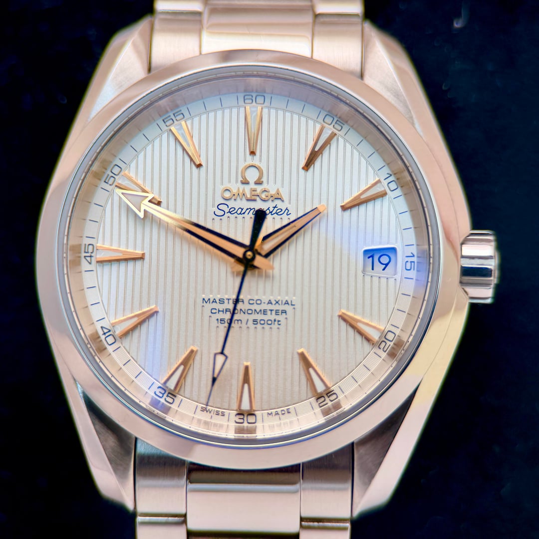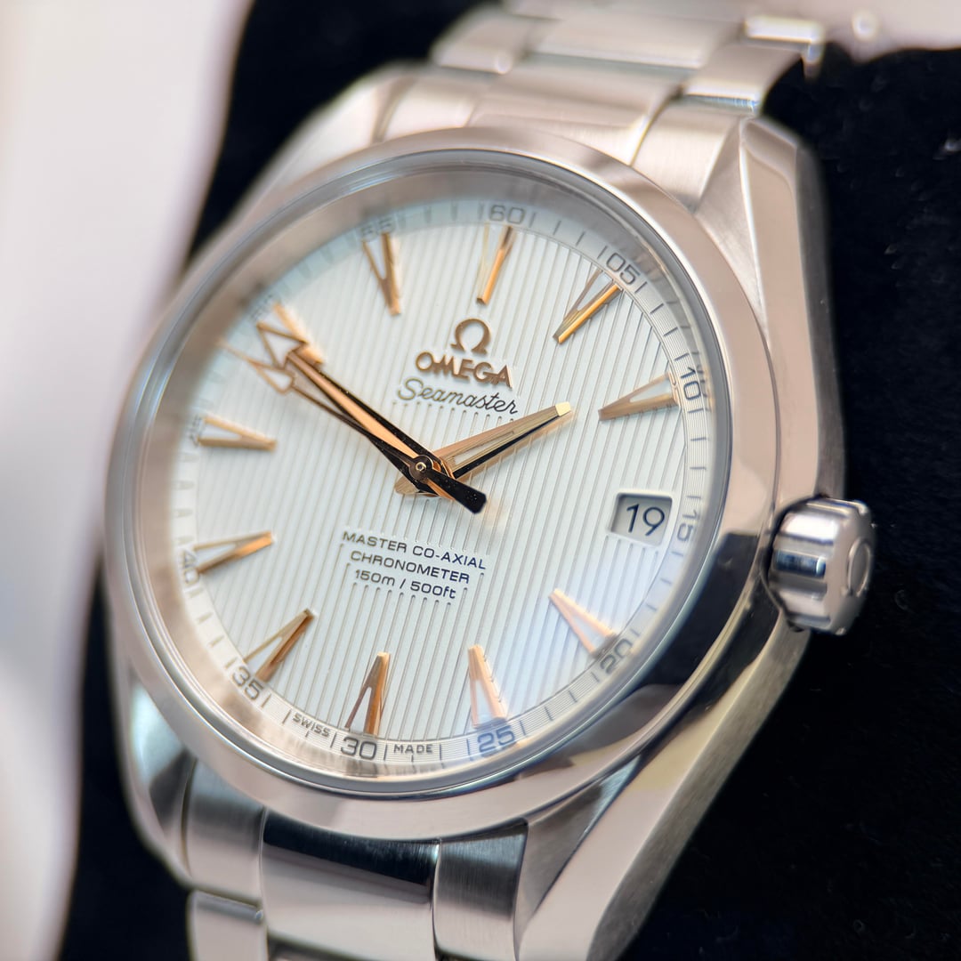 [WTS] Omega Seamaster Aqua Terra |Silver/White teak-pattern dial with solid 18K rose gold hands | 150M 38.5mm | 2023 Full Set in Mint Condition 3