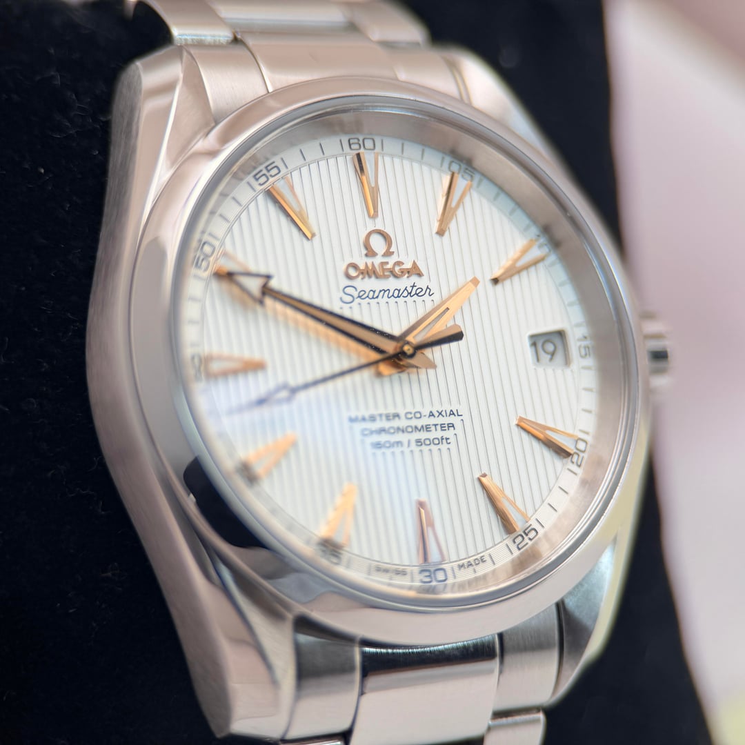 [WTS] Omega Seamaster Aqua Terra |Silver/White teak-pattern dial with solid 18K rose gold hands | 150M 38.5mm | 2023 Full Set in Mint Condition 1