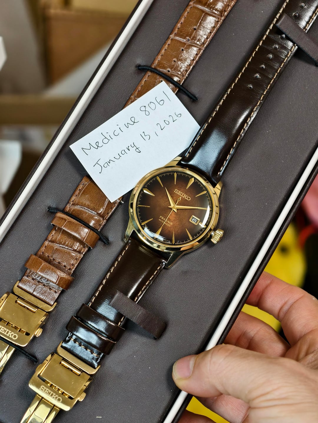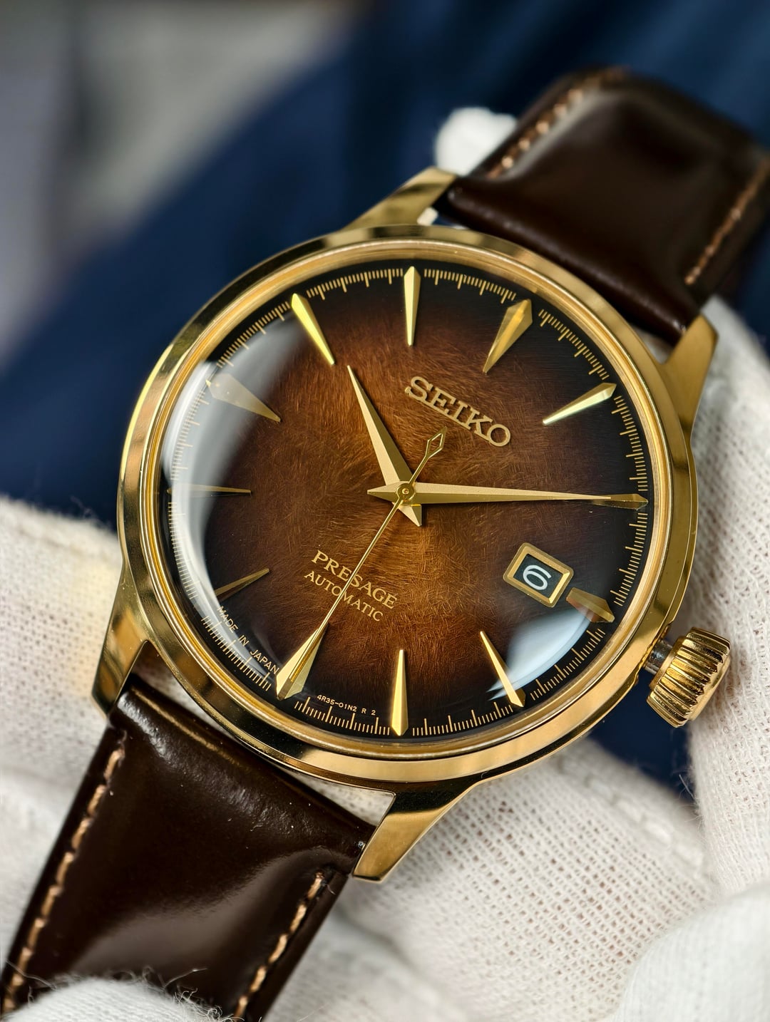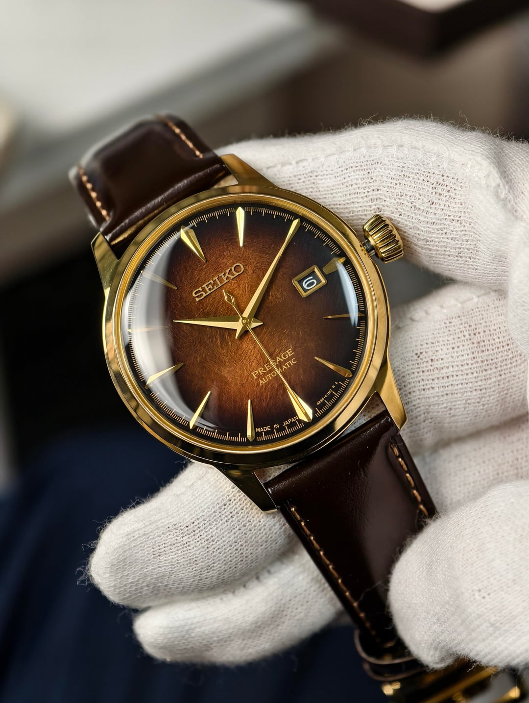 For sale is a Seiko Presage Cocktail Time Limited Edition Reference: SRPD36J1 / SARY134 A beautiful and increasingly collectible Presage Cocktail model, featuring a rich brown textured dial with stunning depth that looks even better in person. 📸 Timestamp & photos: 👉 https://imgur.com/gallery/dqDcy6G ✅ Condition Pre-owned, very beautiful condition Nearly no noticeable scratches Dial is exceptional and very captivating Runs well and keeps good time 📐 Details & Specs Case size: 40mm (very wearable) Movement: Seiko in-house 4R35B automatic 23 jewels 21,600 vph ~40+ hour power reserve Case: Stainless steel with champagne gold tone Crystal: Hardlex Water resistance: 50m Date: 3 o’clock Caseback: Exhibition 📦 What’s included Watch Original Seiko leather strap (included as a bonus) Original box ❌ No papers 💰 Price: $650 USD 🚚 Shipping: $80 USD (worldwide from Japan) 💳 Payment: PayPal Friends & Family or PayPal Goods & Services (+4.6% fee) Fast and secure shipping. Feel free to ask if you’d like more photos or details. Thanks for looking! 🙏