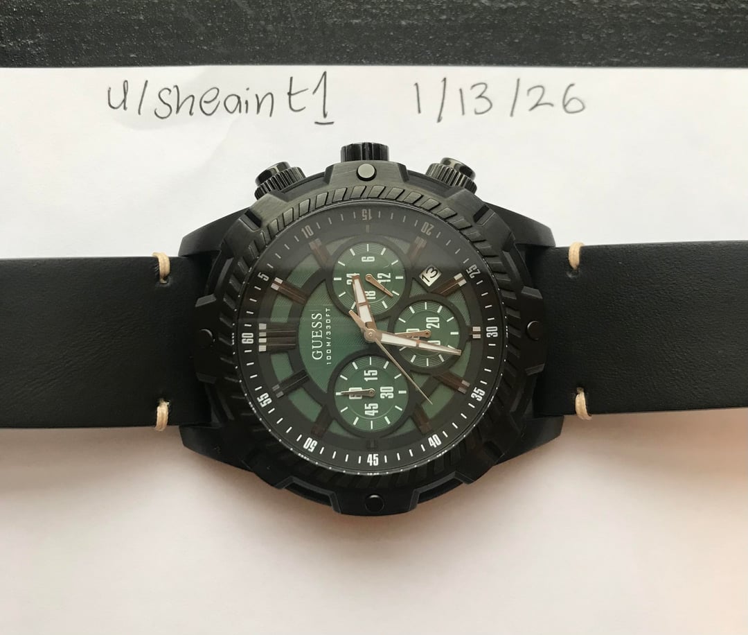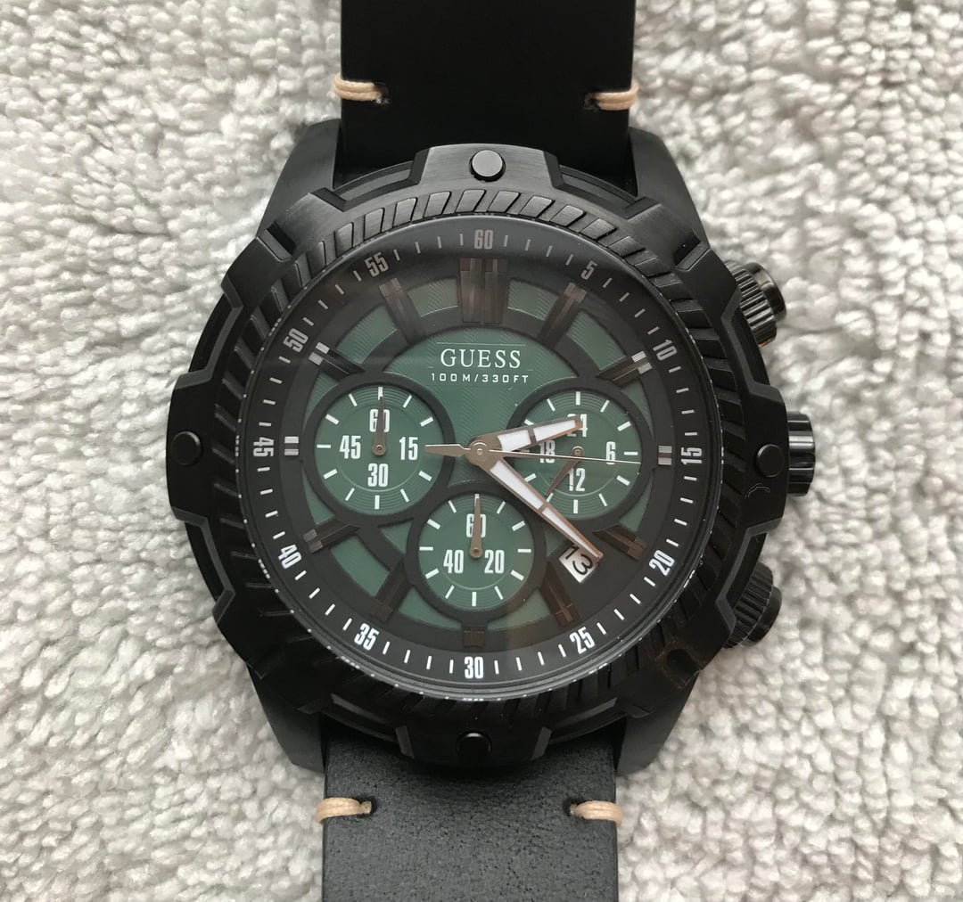 Greetings [r/Watchexchange](https://www.reddit.com/r/Watchexchange/) * [Pictures & Video](https://drive.google.com/drive/folders/1r6etjIJnpQet07i6Xf-Zm79rvfFVcpaE?usp=sharing) * 💵 PayPal FF & Zelle (Preferred) * Ships within 24 hours of purchase USPS/UPS Insured (US Only). Today, I have a **Guess Chronograph** in a 45mm coated case. It’s a robust piece with a subtle pop of green from the dial and its details. It features a screw-down crown, a simple chronograph timer, and a date window. This would make a great beginner piece, given its useful functions and a case built for everyday wear and tear. **Guess Chronograph W0038G2** * Condition: Worn a couple of times. No discernible wear and tear under the light on the case (Pictures and video will better depict this). Straps are in good condition and adjustable for size. One Set of Black Leather quick release along with a silicone OEM strap in green. Recent battery replacement (August 2025) Fully functional and keeping time well. * Case size: 45 mm * Case Thickness: 13mm * Case material: Stainless Steel * Band width : 23mm * Japanese/Quartz movement * Asking $50
