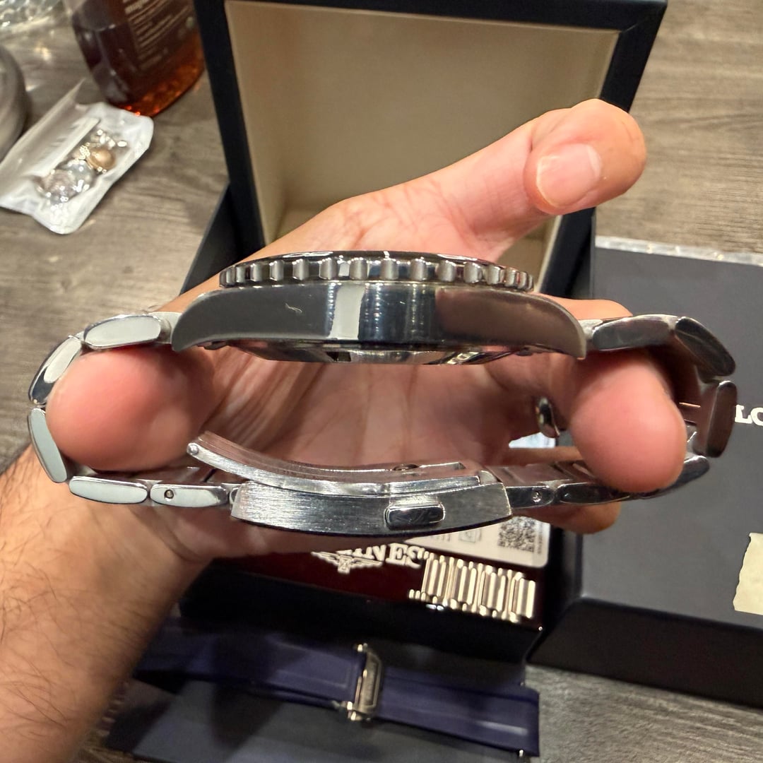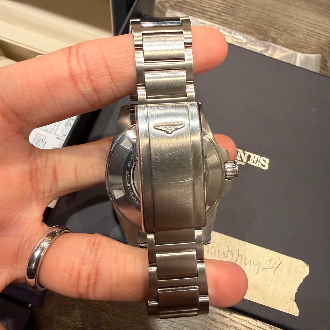 This Longines Hydroconquest GMT is in great condition, with minimal wear signs. This is the 41mm model. There are few hairline scratches on case and bracelet, most notably on clasp. Crystal and bezel remain fresh. Watch comes on bracelet, but a set of blue Longines rubber straps are also included. Watch comes in the set (box, paper, warranty card, extra links, extra strap) as shown in photos. Warranty card is dated to July 2025. Watch is running strong, about 7-8+ sec/day. Asking $1600 plus shipping. US shipping only. Located in Concord, California. Local pickup is welcomed. I’m re-listing this watch since the previous sale fell through due to buyer being unreasonable. Feel free to reach out with any question. Happy to hop on a call to show the watch, take more photo, timestamp, etc… I’m not a watch dealer. Please understand automatic watches are hand-assembled, therefore minor manufacturing imperfection cannot be avoided. I did my best to document and photograph the imperfection this watch has. Please review this listing carefully before making purchase. Thank you!