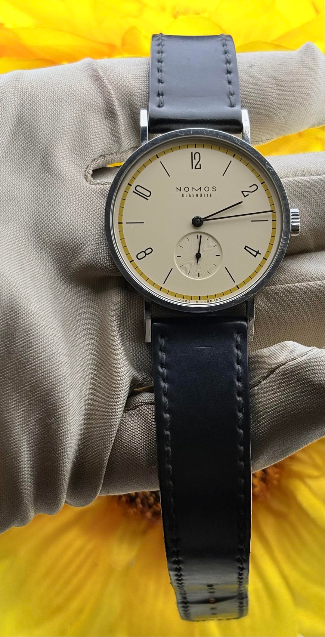 🔥🔥 Nomos Tangente Yellow "A Century Of Bauhaus🔥🔥 - Full kit - Minor hairlines throughout, crystal appears to be clean - 35 mm - Reference: N/A 💰 1️⃣6️⃣5️⃣0️⃣+ ✈️ 💵 Zelle, Wire, PP/V3nm0 (g&s+4%), Crypt0 (+ 3%) ♻️ Always willing to hear our trade offers ✅ Plenty of Refs 📍 PA Timestamp: https://imgur.com/a/5QOSu1M