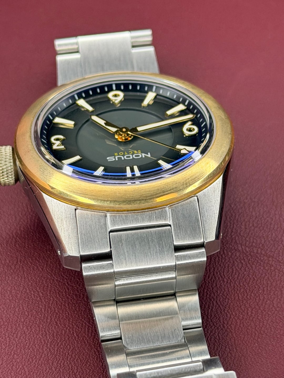 Full kit, Sized but never worn. Still under warranty for 23 months. **CASE** 316L surgical-grade stainless steel 38mm width x 11.7mm thickness x 47mm lug-to-lug x 20mm lug width **CROWN** CuAl8 bronze screw-down crown **GLASS** Flat-top sapphire crystal with domed underside Blue anti-reflective coating on underside **BEZEL** CuAl8 bronze fixed bezel **DIAL** Glossy enamel finish **LUME** Swiss Super-LumiNova® BGW9 Grade A **WATER RESISTANCE** 100 meters **BRACELET** 20-16mm taper Proprietary Nodus Extension clasp Quick-release springbars **WEIGHT** 62g (watch head only)