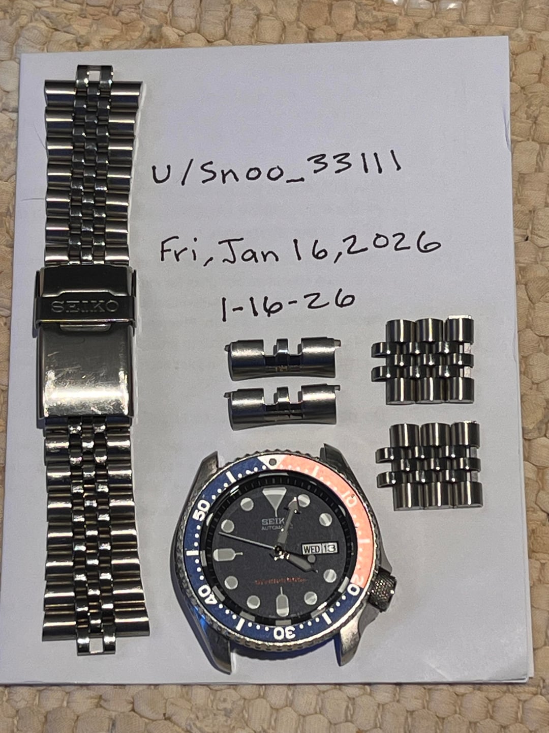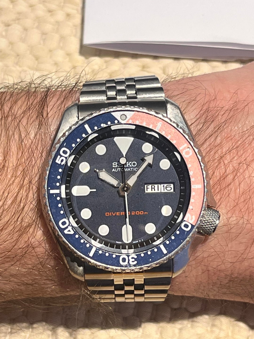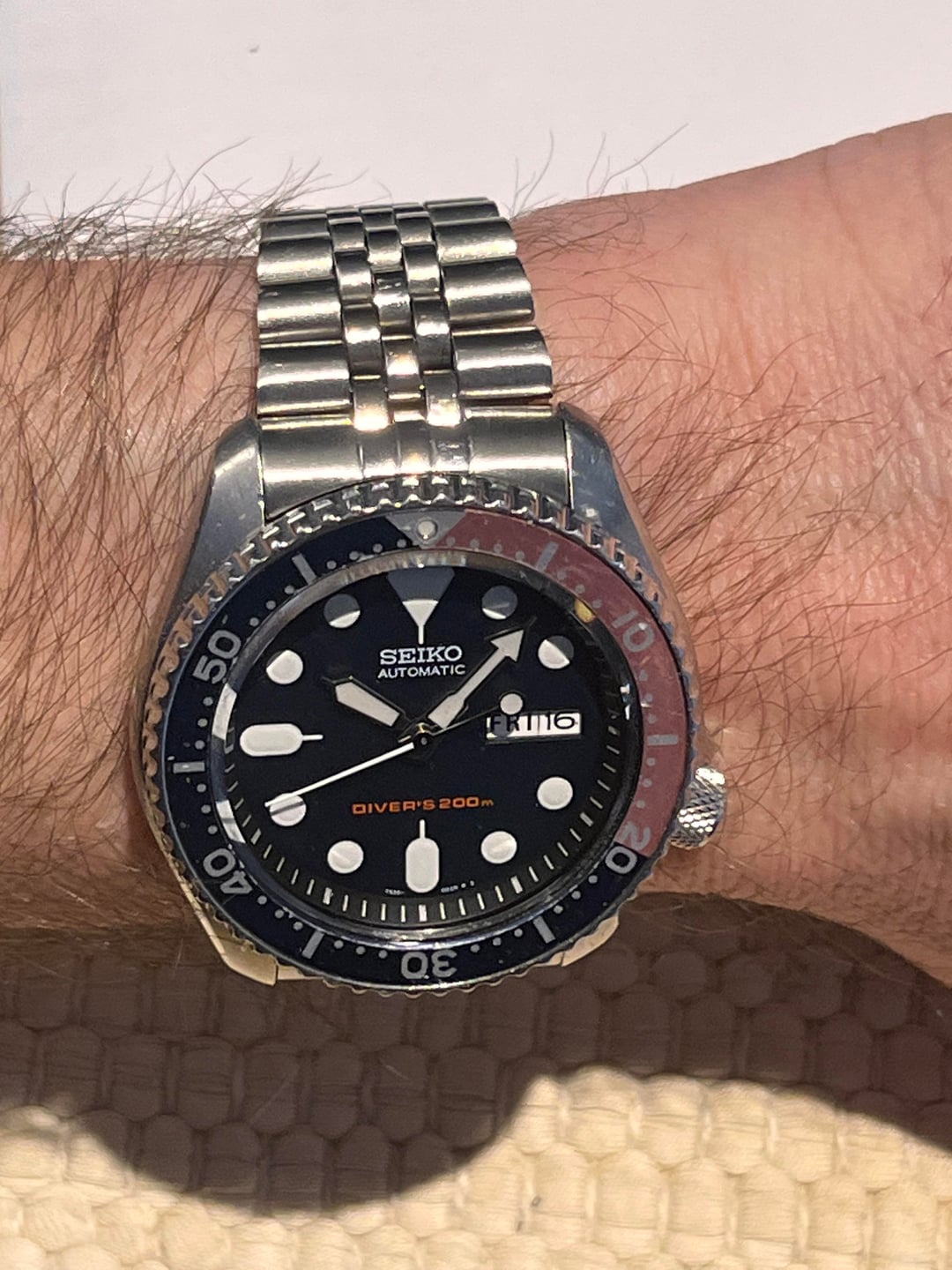 Selling my Seiko SKX009 on bracelet. Upgraded to a more accurate, reliable, and having Seiko NH36 movement. It also have a larger signed “S” crown for easy operation. The bezel is operable but stiff. Let me know if you have any questions. PayPal and Zelle accepted $299 + shipping