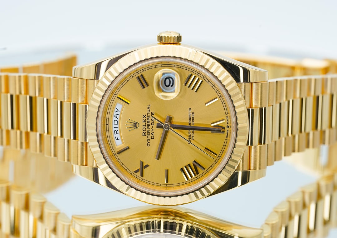**\[WTS\]Rolex President Day-Date 40mm 228238 18K Yellow Gold Roman Dial BOXES/PAPERS!!** **Location**: U.S.A. / South Carolina **Condition**: This beautiful timepiece comes with the outer cream box, inner green wave box, instruction manuals, hangtag, all links, and original warranty card (Dated in January 2022). The watch is in excellent pre-owned condition with very light cosmetic wear throughout. Pay close attention to the pictures as they accurately describe the condition. Mechanically the watch is functioning as it should. Serial numbers and names are blurred in photos only for privacy reasons. We are happy to answer all questions about the watch. Just reach out to us via messages. **Price: $43,500** **Payment Method: Bank Wire Transfer** **Shipping:** I ship fully insured Fedex overnight after clearing of the wire transfer. International buyers please reach out and we can discuss options. **Details** * Reference Number: 228238 * • Bezel: Fixed Fluted 18K Yellow Gold * • Band: 18K Yellow Gold * • Case: 18K Yellow Gold * • Case Diameter: 40mm * • Movement: Automatic * • Crystal: Sapphire * • Dial Color: Champagne with Roman Numerals * • Functions: Hours, Minutes, Seconds, Day/Date * • Water Resistance: 100 Meters * • Year: 2022 Pictures:[https://imgur.com/a/96XpdQu](https://imgur.com/a/96XpdQu) Timestamp:[https://imgur.com/a/T9j9yBU](https://imgur.com/a/T9j9yBU)