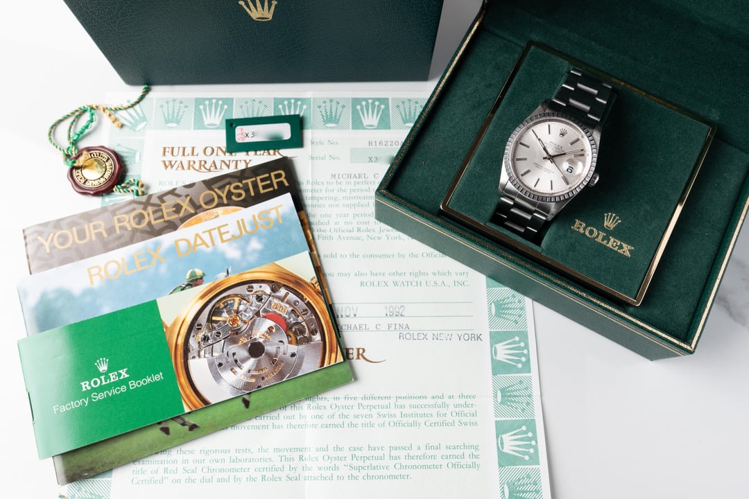 1992 Rolex Datejust 16220 IBM Quarter Century Club Award - Box and Papers $5,750 Back in the day when company loyalty meant a whole great deal, watches were seen as forms of congratulatory awards for loyal employees. In this case, the recipient had joined IBM’s “Quarter Century Club Award” in December of 1992. For 25 years of loyalty in the company, IBM gifted employees with a Rolex and this watch is an example of many, a lost form of gratitude in today’s day and age. The watch was worn with signs of use throughout the case and bracelet. Tiny nick on the edge of the crystal at 10 o’clock. The watch comes as a full set, with the awardee’s name on the sticker of the outer box. Serial - Year: X serial ~1991 Bracelet - Strap: 78360 bracelet with R clasp. 12 links. Fits up to 7.5” wrist Box - Papers - Accessories: Outer box with awardee sticker, inner box, oyster booklet, datejust booklet, factory service booklet, original hang tag with serial, chronometer tag, original warranty papers dated Nov 1992 Service History: Unknown. Running at 1s/d, 216 amplitude Pictures https://imgur.com/a/16220-ibm-25-yrs-UKJEQeo Timestamp https://imgur.com/H0Se2yZ Watches will be shipped via FedEx upon receipt of bank wire only. Sorry, no P2P payment platforms due to scams. Zelle with references. Prices are for an outright purchase, no trades preferred. **Inquiries:** [Instagram](http://www.instagram.com/angelcitytime), PM or chat Member of r/watchexchange for years. Excellent references on other platforms and forums which I can provide upon request. Please buy with confidence. All sales are final. Thanks for looking!