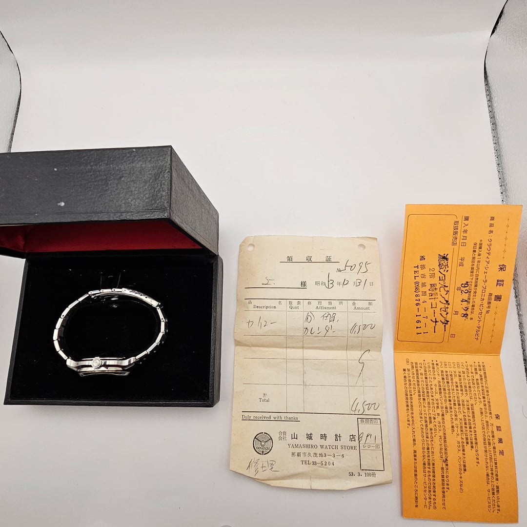 I guarantee that you will never find a more complete vintage King Seiko 5626 7171 than this. This has all the original service records dating back to 1978, the original case back sticker and the original box. If that wasn't enough, this has been fully serviced by Tokei Medic, removing the troublesome plastic star wheel in this 5626 movement to a steel one. A true museum piece if we can call it that. Condition is excellent as you can see. There are barely any scratches on the impossible-to-find XGB 241 bracelet (which is original to this watch) and it fits my 6.75 inch wrist like a dream. It has a hi beat 28800 bph movement and a 36mm diameter for the watch itself. The watch itself works at a 0/s per day accuracy (which is crazy for such an old movement!) It has also has the original faceted glass as you can see from the angled shots. I have all the service pictures with the timegrapher details and can provide it on request. Timestamp is attached in the post (last picture). **$1235 Shipped (PayPal - 5% extra with g&s, Wise, Bank transfer accepted)**