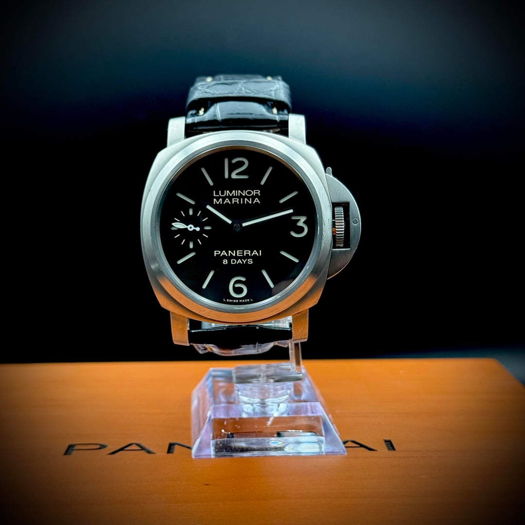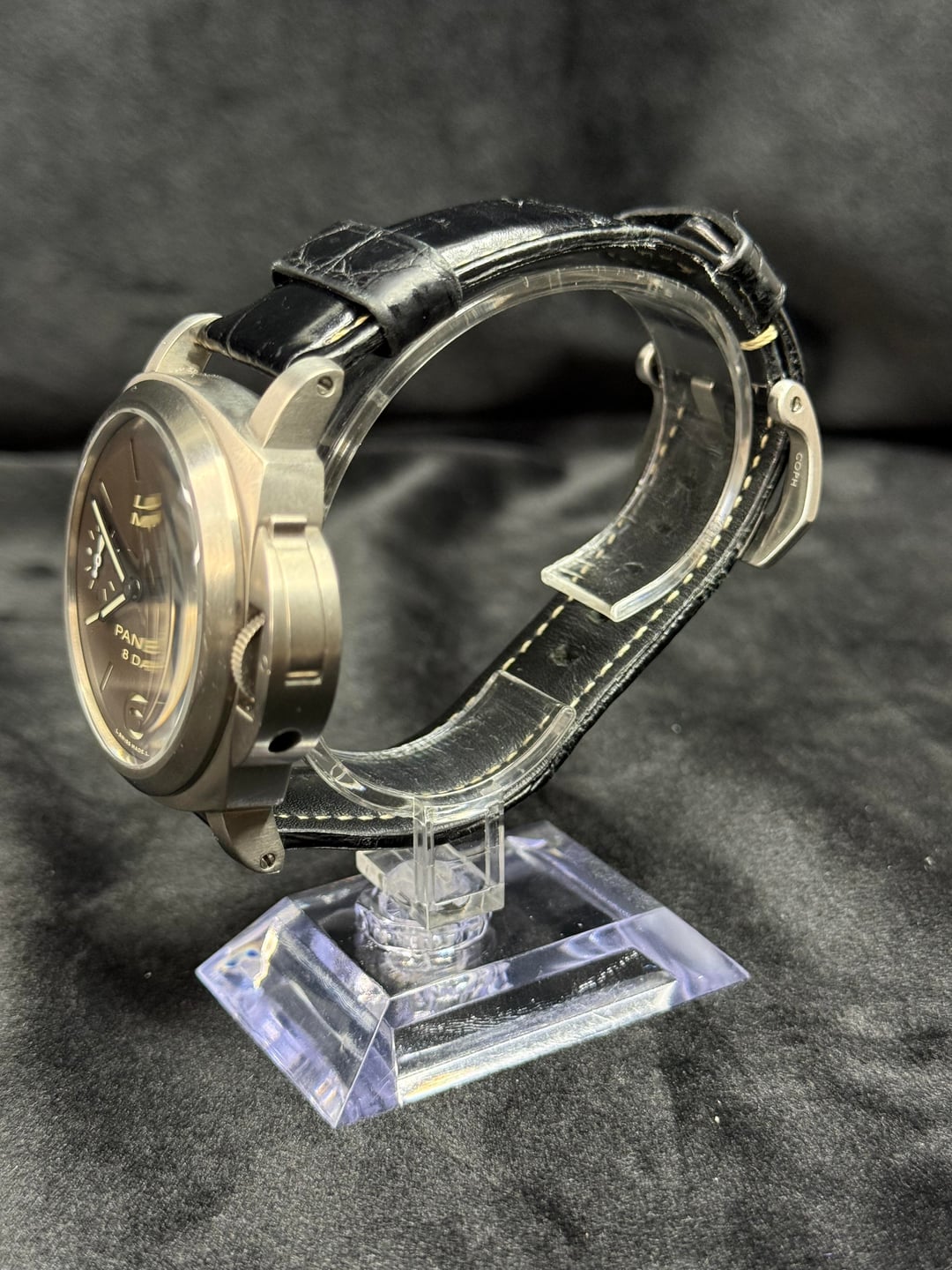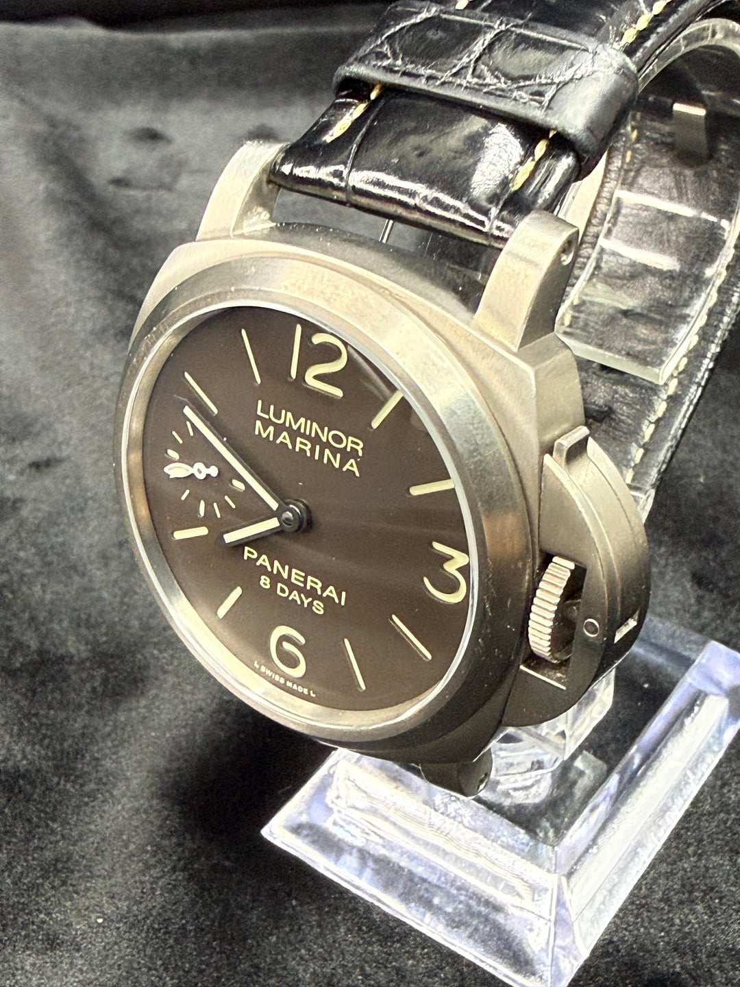 Panerai Luminor Marina Brown (Tobacco) Dial Titanium Open Case Back - PAM00564 Nice preowned polished condition, clean crystal, exhibition case back. Running within spec on timegrapher Featuring: Arabic numeral dial with baton indexes Swiss-made 44mm titanium case Water resistance of 300m Two-piece black black aligator strap and buckle closure Flawless Scratch-resistant sapphire crystal This beautiful Panerai PAM00564 is priced to move. See pictures for actual condition. This watch is priced well below any true comparables that I can find at $3495 Don't think so? Shoot me an offer! Contents Include: Double Box, Watch, Manual, cloth, strap tool, extra OEM black rubber strap (good used condition), Extra AM blue jean strap (good used condition) ✅This watch is very nice pre owned condition ✅Bank Wire or Zelle preferred ✅Happy to (prefer to) hop on a facetime for watch verification. ✅I have this watch in my possession, it is ready to be shipped out. ✅Buy with confidence, I pride myself in my seller reputation and want my buyers to be happy and come back to me for future purchases. ✅I use a macro lens that can pick up scratches and lint and dust not able to distinguish with the naked eye. ✅❓Feel free to message me with any questions.❓ Why Buy From Me? 👍Fast, Free and Secure shipping for CONUS - Fully insured and carefully packaged 👍Excellent Customer Service - Very responsive before and after the sale 👍Authenticity Guaranteed -- All watches are guaranteed and verified authentic