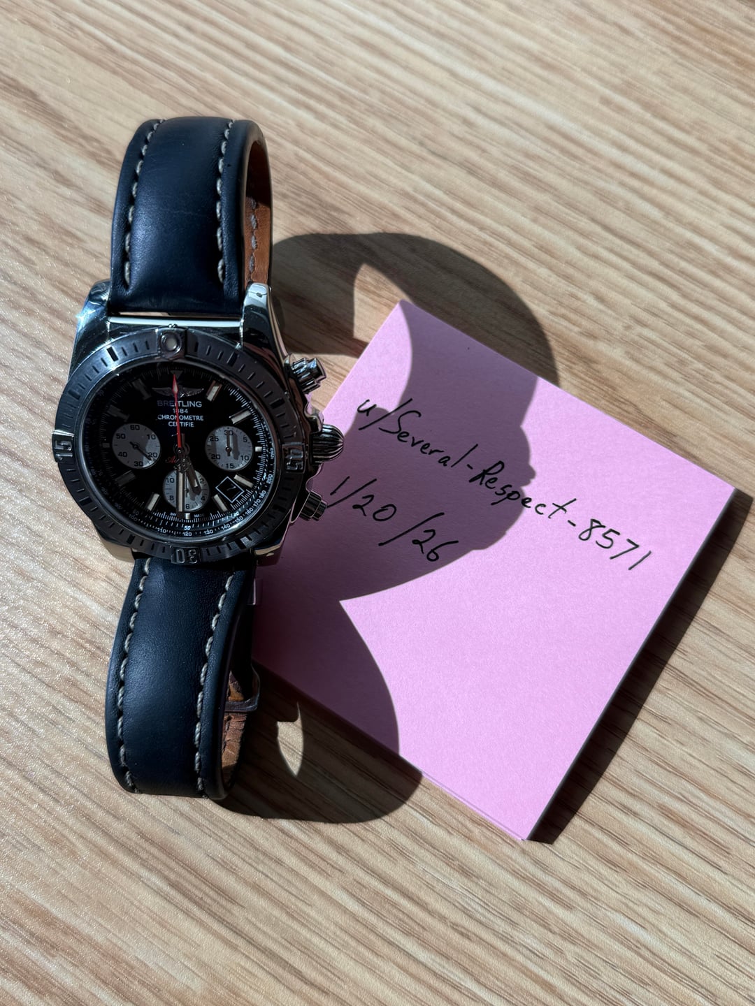 For sale is my 2016 Breitling Chronomat 44 Airborne, reference AB01154G/BD13-375A. This watch is in very good used condition, showing only minor signs of wear. **Key Specifications:** * **Movement:** Automatic * **Case Material:** Steel * **Case Diameter:** 44 mm * **Dial:** Black * **Bracelet/Strap:** Black leather * **Year of Production:** 2016 * **Included:** Original box and papers (full set) **Price:** $2,999, including shipping. Shipping to be insured with tracking, details to be discussed. Since this is my first transaction on r/watchexchange, to ensure buyer protection, I prefer you purchase directly through my Chrono24 listing where you can use their escrow service for secure payment (wire transfer) and insured shipping. Here's the link: [https://www.chrono24.com/breitling/chronomat-44-airborne--id44193193.htm](https://www.chrono24.com/breitling/chronomat-44-airborne--id44193193.htm) Location: Tampa, FL, USA. Prefer shipping within CONUS. Feel free to ask any questions via PM. Thanks for looking!