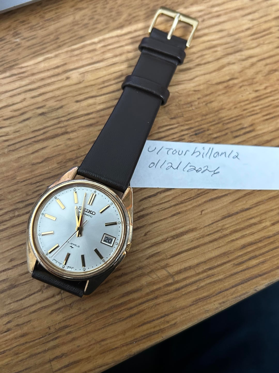 Timestamp: [https://imgur.com/a/fqJIXuA](https://imgur.com/a/fqJIXuA) *If you’re looking for an affordable vintage Seiko, this 1976 Seiko REF: 7025-8069 may just be the watch for you.* *This watch features a stunning silver sunburst dial that is paired with mirror polished gold toned indices and hands that create a great contrast.* *Powering this watch is a Seiko 17-jewel automatic movement that provides reliable accuracy and a date with quick-set.* *Housing this watch is a gold toned case that sits on the wrist comfortably.* *Size: 37mm diameter, 11mm height, 19mm lug width.* *Condition: The watch is in good condition though the case gold plating does have wear.* *Movement Condition: The movement was serviced in December of 2025 and is currently running at within 30 seconds per day, amplitude of 260-280 and a beat error of 0.3MS.* *Price: $179, no trades at this moment.* *Shipping: Free shipping within the US. International shipping available, price may vary* *The watch ships from SLC, Utah USA.* *Payment Method: Paypal, Venmo or Zelle. 3% extra if using goods & services to cover the fee charge.* *Feel free to reach out if you have any questions!*