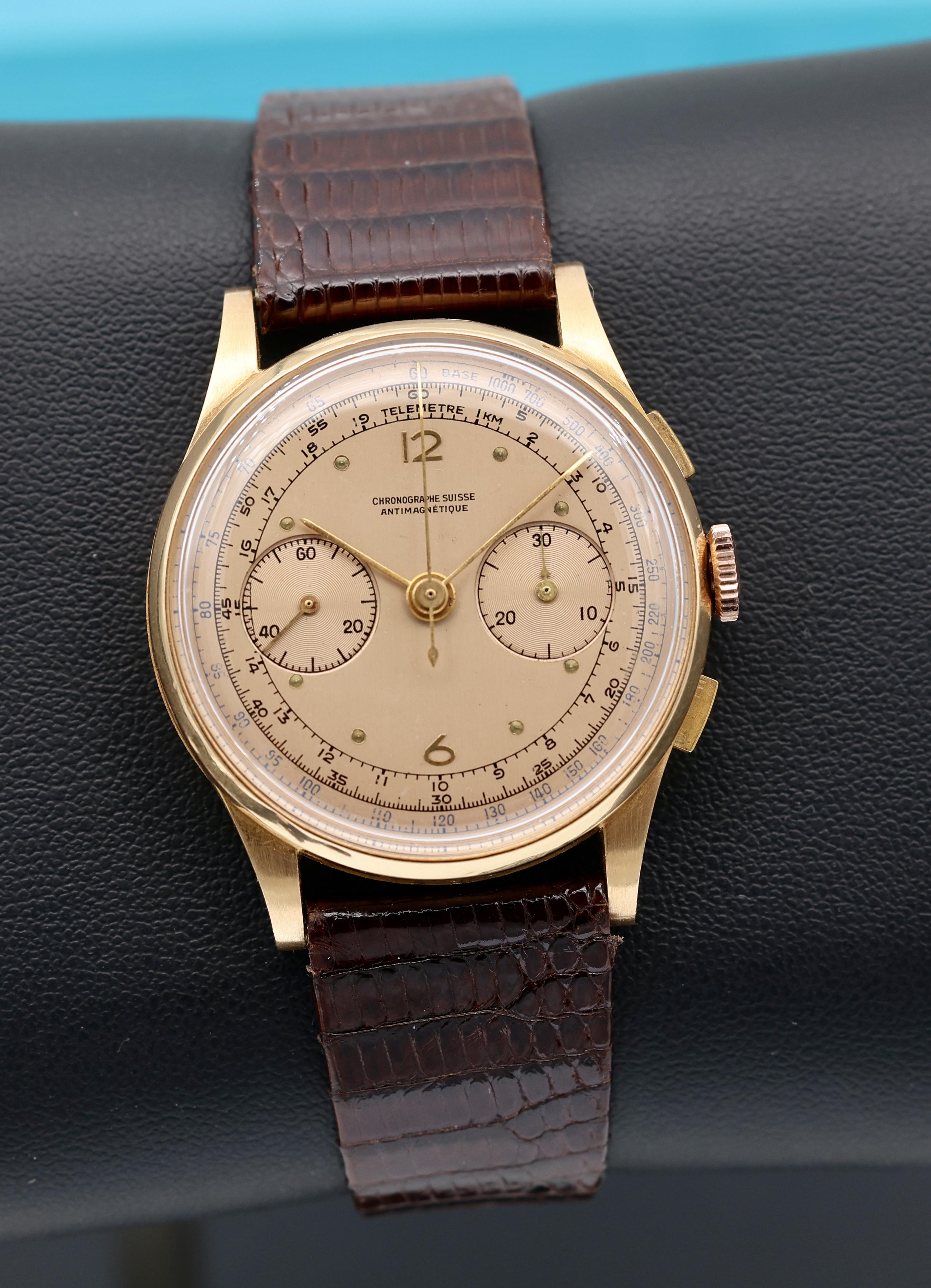 Hello All - I am putting for sale - Chronograph Suisse. 18K Solid Gold. Very nice. AM strap. Salmon Dial. I am asking $2495 + shipping . 📷 More Pics: [https://www.dropbox.com/scl/fo/74l4c6nanxpa0ll2xy1sy/AFHgnk5TYmNjUNem54m13s4?rlkey=7dbns9daor4buwl0twfejeskw&st=u8y40dqu&dl=0](https://www.dropbox.com/scl/fo/74l4c6nanxpa0ll2xy1sy/AFHgnk5TYmNjUNem54m13s4?rlkey=7dbns9daor4buwl0twfejeskw&st=u8y40dqu&dl=0) 📆 Timestamp: [https://www.dropbox.com/scl/fi/fl93w0e5o8vxmkhsan16e/Photo-Jan-13-2026-7-31-46-PM.jpg?rlkey=9xrvjnjkzk1hsz52kle2gvpqr&st=dtaj9py0&dl=0](https://www.dropbox.com/scl/fi/fl93w0e5o8vxmkhsan16e/Photo-Jan-13-2026-7-31-46-PM.jpg?rlkey=9xrvjnjkzk1hsz52kle2gvpqr&st=dtaj9py0&dl=0) Watch located in NJ USA. All my listings here: [https://www.watchrecon.com/?query=watchex\_enterprises&last\_days=0](https://www.watchrecon.com/?query=watchex_enterprises&last_days=0) watchex\_enterprises - WatchRecon I am very comfortable doing a facetime to show the watch if needed. Please PM me for any questions that you may have. I am certain it will go to a good home. Thanks for looking. \*\* 🛡️Buy with Confidence!! 700+ references. \*\* ⭐️Checkout my profile for other amazing watches. \*\* 📦All packages are shipped Fedex with insurance. \*\* 🌎Shipping accepted globally.