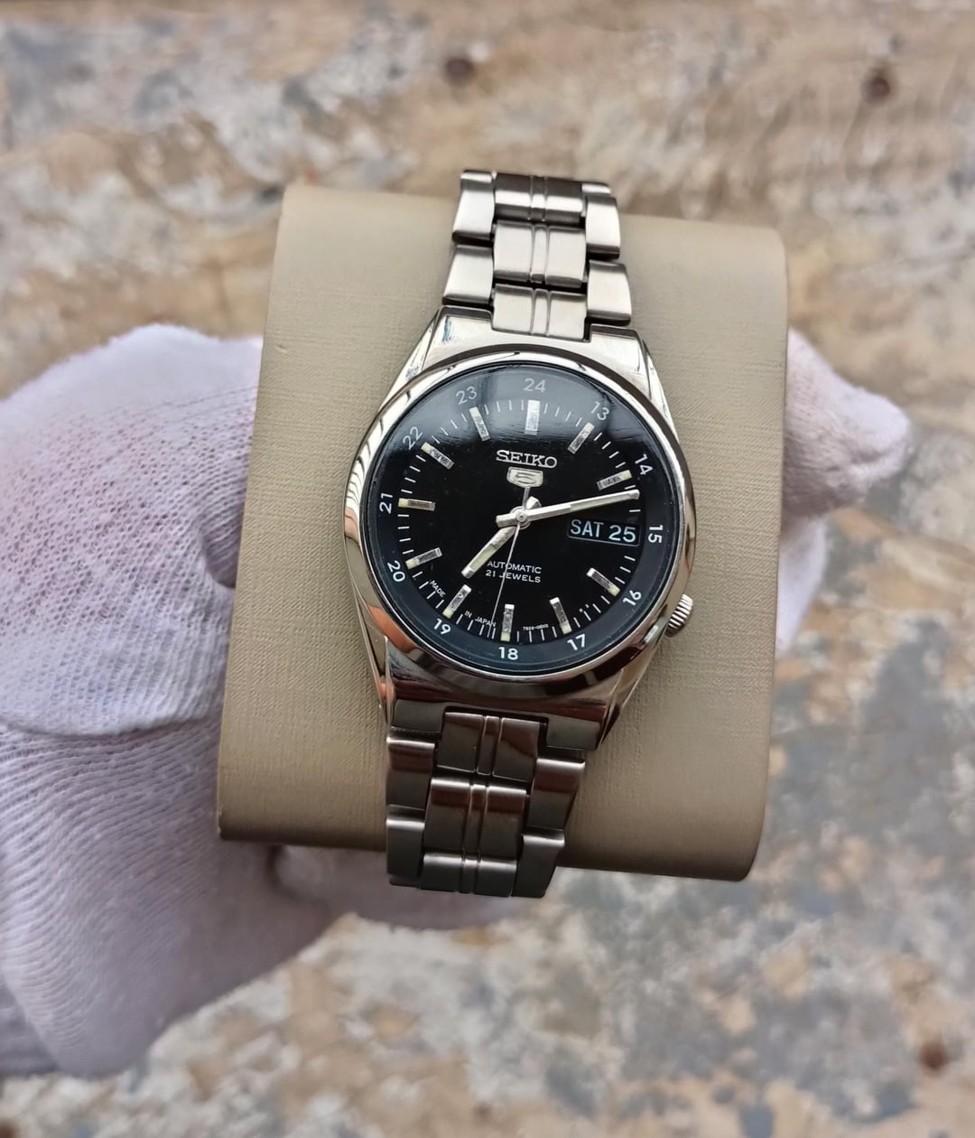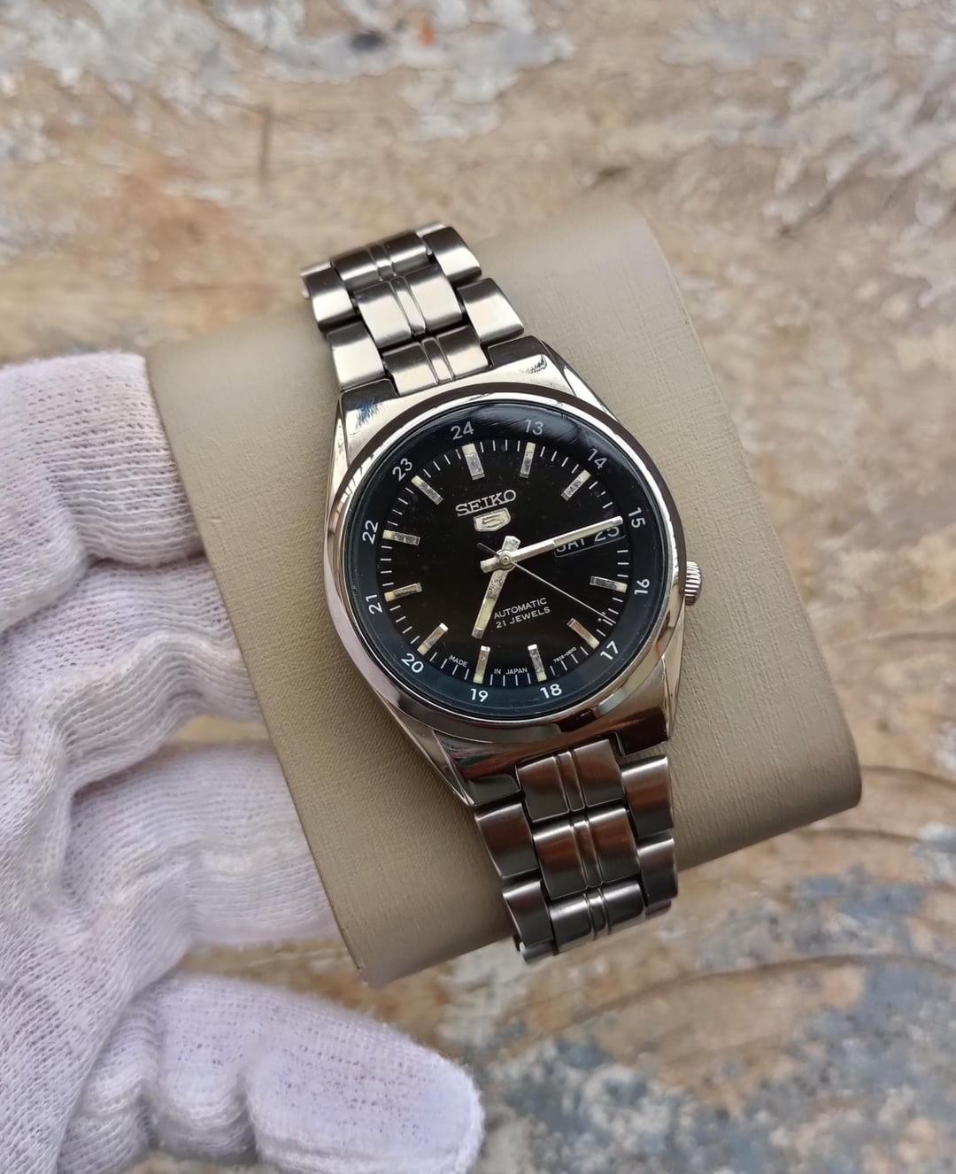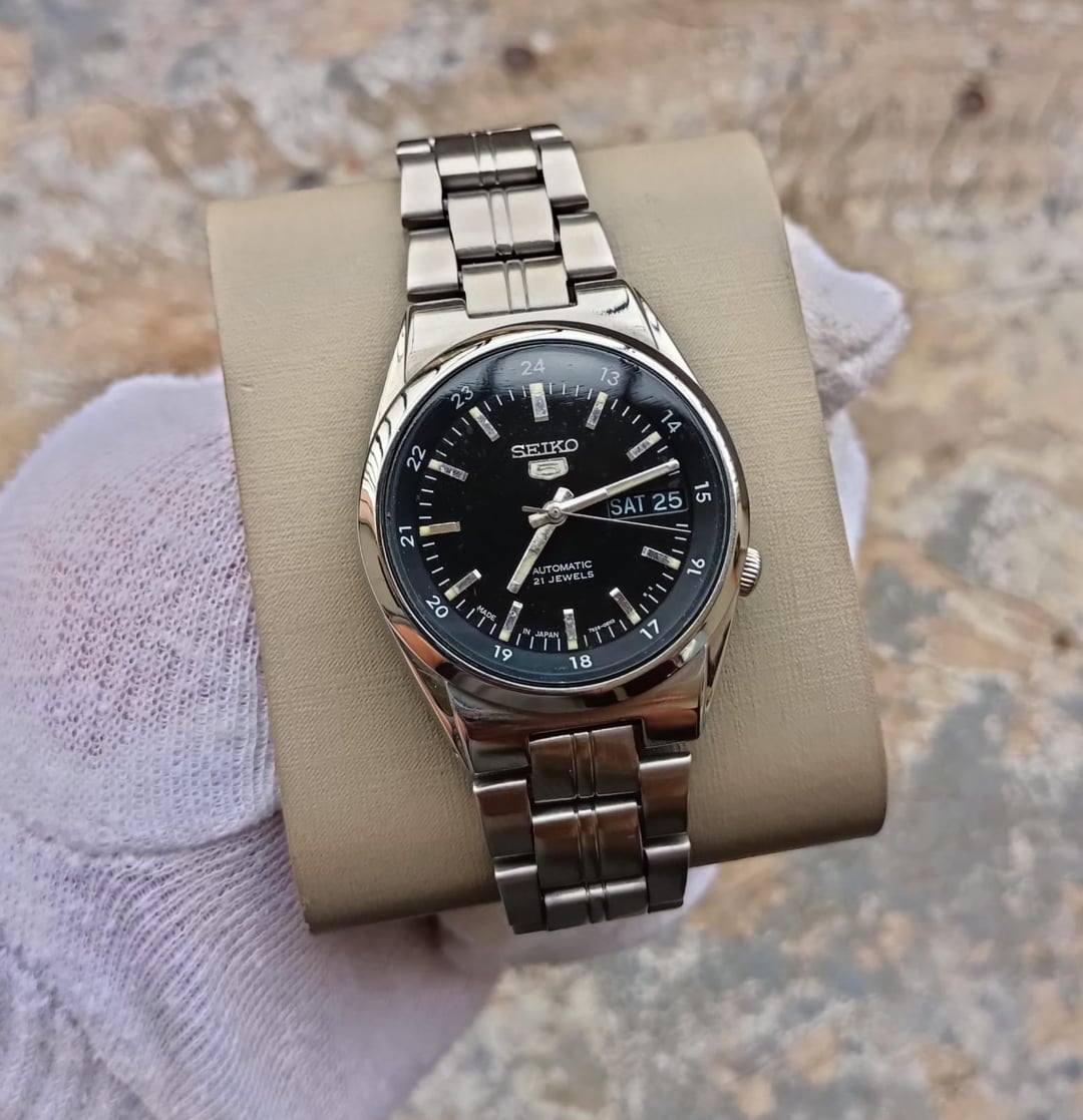 For sale is a Seiko 5 Railway. Model- Ref-SNK567J1. Description and Features: Overall this is in good Working condition. ⚡ Key Highlights \* Movement: Seiko Caliber 7S26. \* 21 Jewels. \* Manufacture: Japan. \* Hands & Markers: Silver-tone luminous. \* Glass: Mineral crystal. \* It has an exhibition case back. \* Markers: Applied stick indices and hands. \* Mineral Crystal (Hardlex standard). \* Case Material: Stainless steel. \* Wrist size: approx. 7.6 Inches. \* Equipped with a push‑button fold‑over clasp. \* Condition: Watch Only Please see the pictures carefully. SPECIFICATIONS: Movement: Automatic, Case Diameter, 36 mm, Thickness 11 mm, Lug to Lug 39 mm. Please comment before messaging. Batteries are not allowed to be sent with the watches as per shipping policy. Payment Method: PayPal F&F, Crypto, & Payoneer Only. Shipping Via UPS. Price $125 Shipped. After payment confirmation the scheduled shipping time will be 2-3 working days.