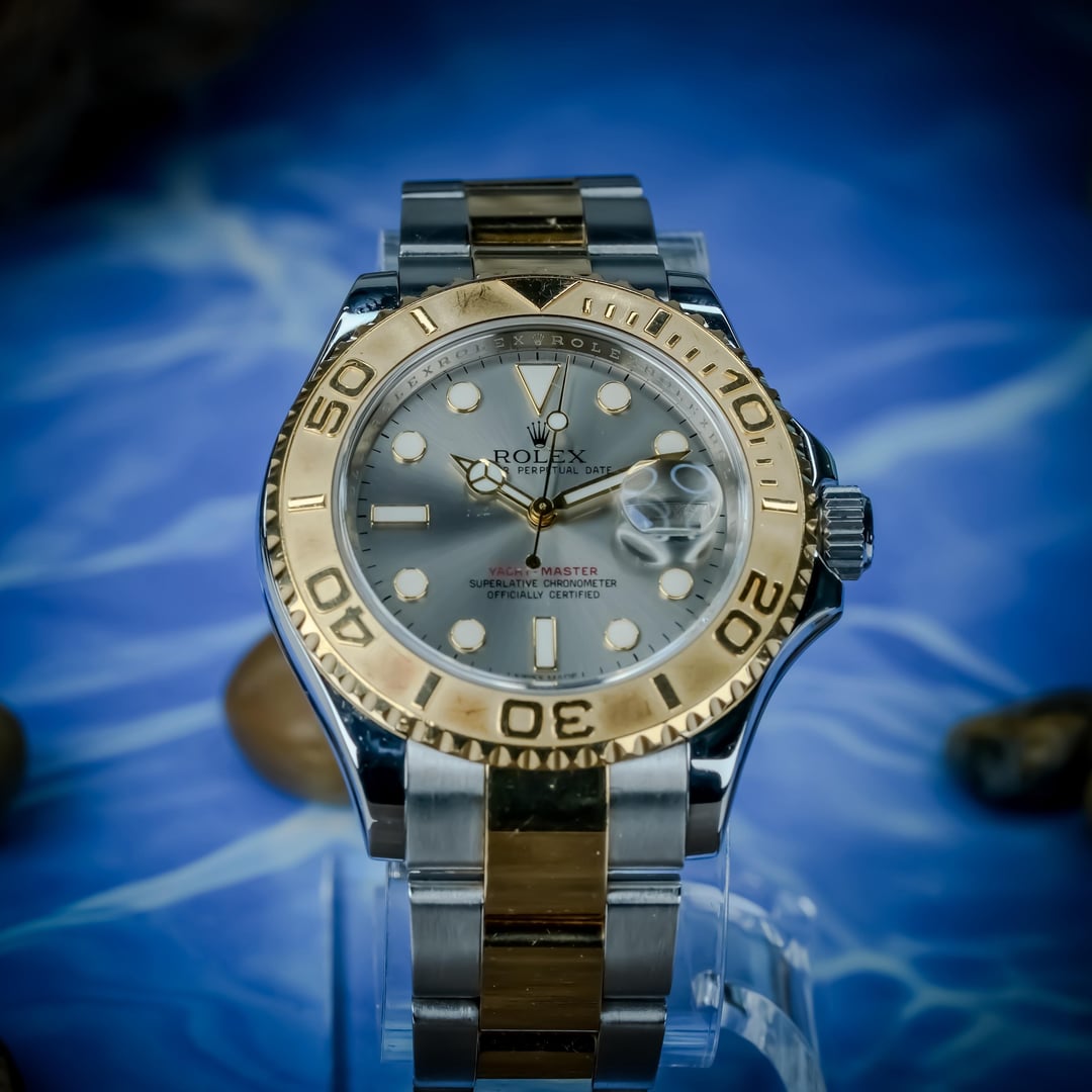 | Rolex Yacht-Master 18k Yellow Gold/Steel Blue Dial Mens 40mm Watch Z 16623 jewelsintime (3002) |