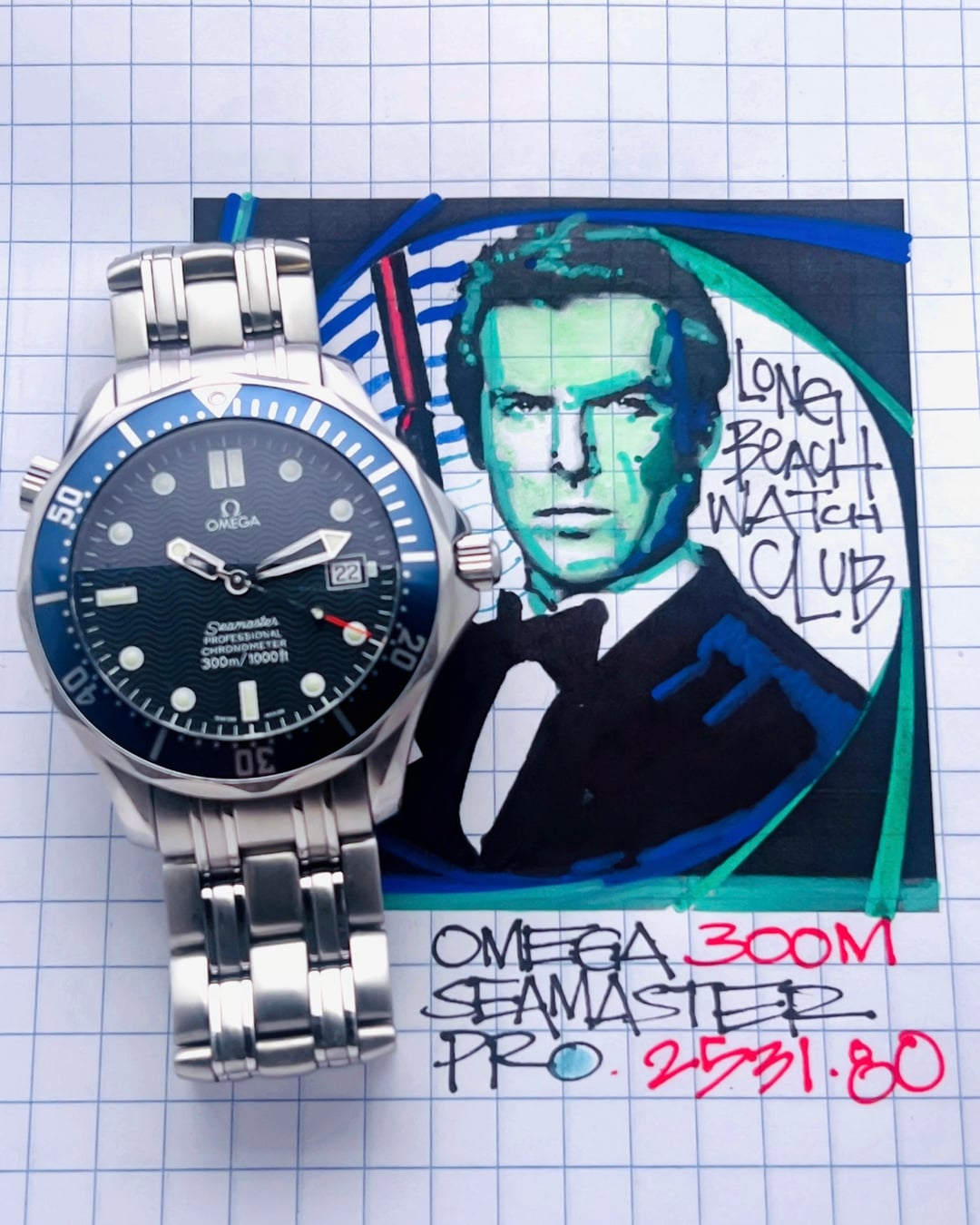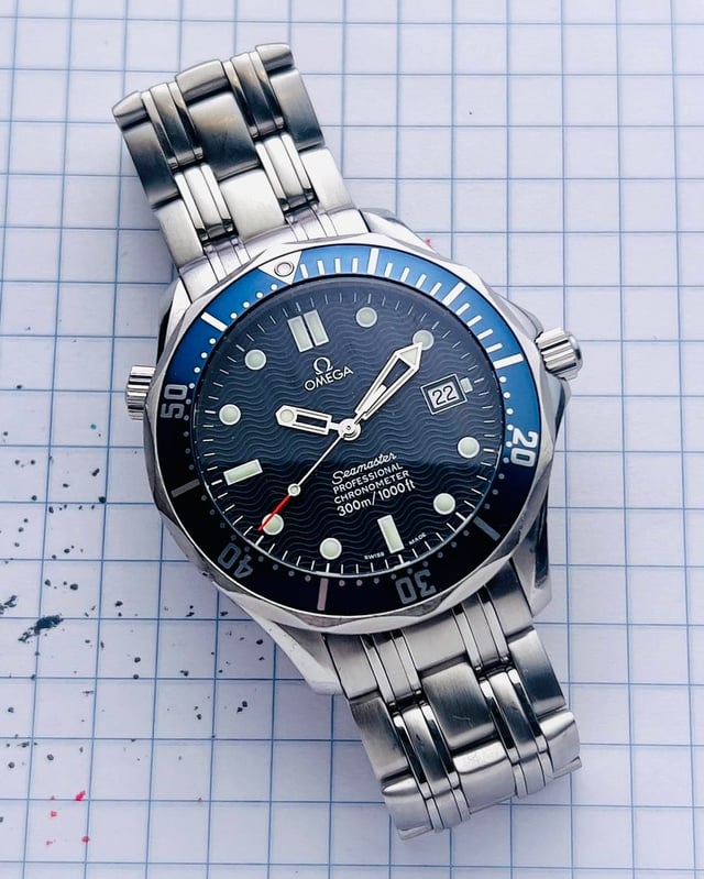 Omega Seamaster Professional 41mm 300m ref. 2531.80 Automatic The Seamaster is a legendary watch that has a rich maritime history and this 300m Professional with screw down crown is one of the time tools built for racing over oceans as well as diving. This neo-vintage classic is not only easy on the wrist but also offers some wabi-sabi appeal to the eyes with a marine blue insert and neon fiesta red tip seconds hand. This era is specifically synonymous with the Brosnan James Bond series however the watch itself is no in the canon of watch design: subtle wave dial, full size case with helium escape value and slim profile. It is powered by the Omega cal. 1120 which is ETA 2892-2 not only know for accuracy and durability but also ease of service for sustainability Overall this watch appears in very good condition for age with exception for scratched under lugs from strap changes. While no recent service records, the timegrapher data shows a healthy watch— Your experience may vary. _____________________________ Timestamp pix Videos and timegrapher: https://drive.google.com/drive/folders/1o5a8CaGE_03QFgaKHgPr3NdxebFZpI_y?usp=sharing Specifications: 41mm case X 20 lug width X 47.5h (lug to lug) X 11.9.cc with slightly domed sapphire Box and papers: box but no card Bracelet: total length including head is 7.7in and for best fit, the buyer should be under that. ________________________________________ - video is the best way to view the watch if in-person test drive is not available. Due to the different characteristic of the cameras and gadgets used, the color of the watch you purchase may not be the same as shown on this website or on our Instagram. * will consider trades that make sense but please consider time, shipping, and trade value—not market. * All sales final unless the watch is misrepresented or lost in transit (always fully insured) * Link to [feedback here](https://www.reddit.com/r/WatchExchangeFeedback/search?q=soycowboy&restrict_sr=1&sort=new) & [watchcharts here](https://watchcharts.com/repcheck/user/soycowboy?source=reddit&type=feedback) * Asking a *negotiable* **$3333** via bank wire, Zelle, venmo, or possibly Applepay with super strong references or if I know you. Price includes fully insured Fedex shipping in the USA— hand delivery in most of the Los Angeles or Orange County areas with drinks or coffee on me ;). Cheers, Stephen
