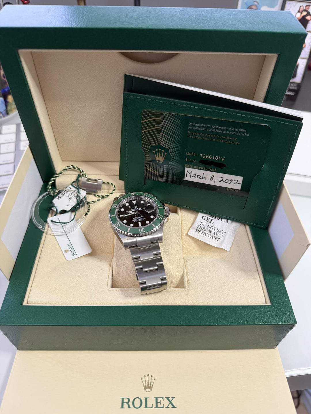 March 2022 date on card. I wasn’t able to wear this one too much so there minimal wear but definitely some hairline scratches that I tried to capture in the pictures. Full kit and links included. Payment via wire or zelle. Looking for 13k obo. Shipped insures in the CONUS. Happy to do face to face transactions in the SF Bay Area or FaceTime with prospective buyers.