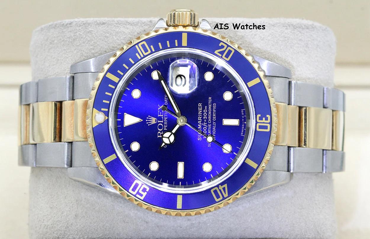 | Rolex Submariner Blue 16613 40mm 18K Yellow Gold Stainless Steel qdwatches (2076) |