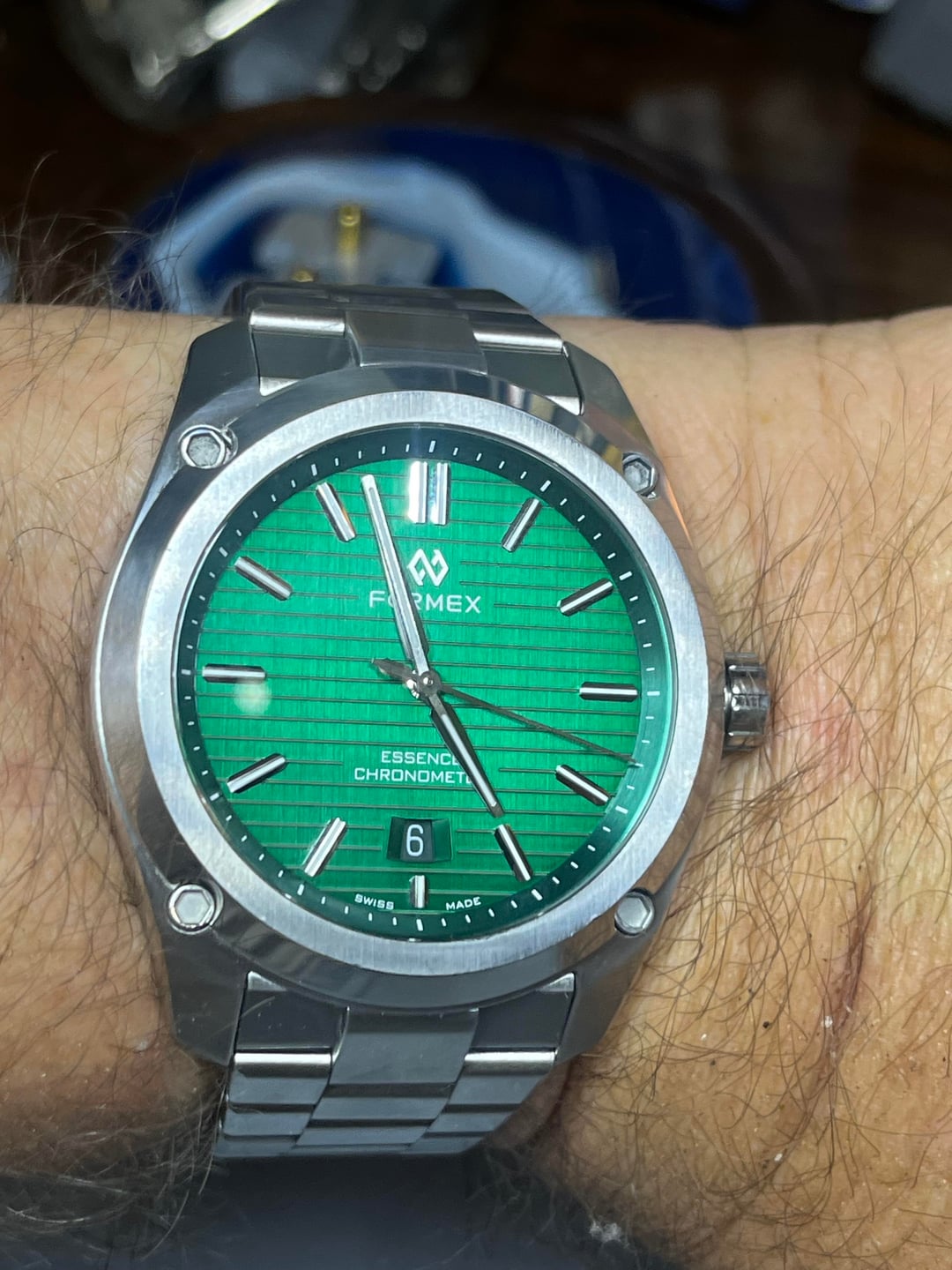 For Sale: Formex Essence 43mm with Green Dial. Excellent Condition. Looks new on wrist. There are only very minor scratches on the clasp. Serviced within the past 2 months and running well within COSC standards. This watch will be in great operating condition for years! Full Kit Included. Price: $950.