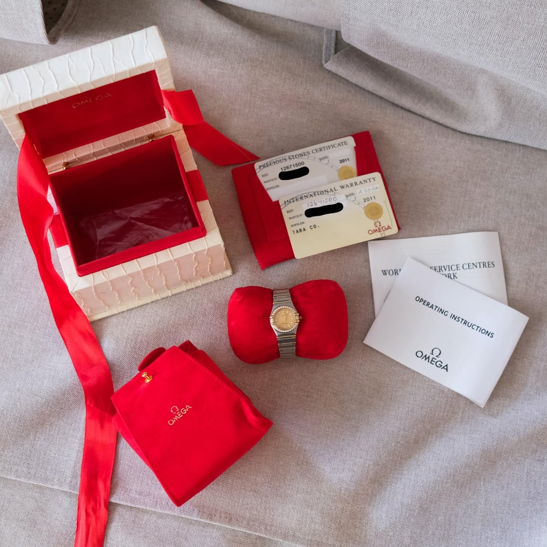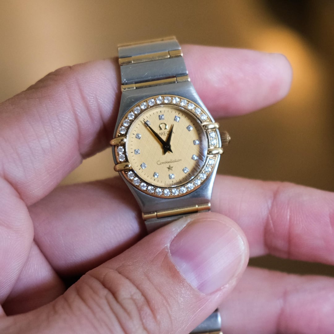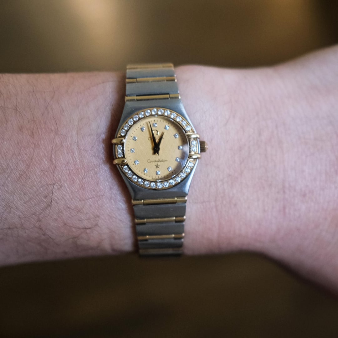This is a Omega Constellation Ref. 1267.15.00 with Box+Card as pictured! It's in excellent used condition with normal signs of wear and originally purchased in 2002. It features diamond inlays. Battery was just recently changed at a professional watch shop. Some features include: Case diameter : 22.5 mm Case: Steel ‑ yellow gold Dial color: Textured Yellow Bracelet: Rare Steel-Gold Full bar Crystal: Domed, scratch‑resistant sapphire crystal with anti‑reflective treatment inside Water resistance: 3 bar (30 metres / 100 feet) Movement: Calibre OMEGA 1456, Quartz precision movement with rhodium‑plated finish. Find the link here: [https://www.omegawatches.com/en-us/watch-omega-constellation-95-12671500](https://www.omegawatches.com/en-us/watch-omega-constellation-95-12671500) Looking to get $1,400 OBO. Happy to answer any questions!