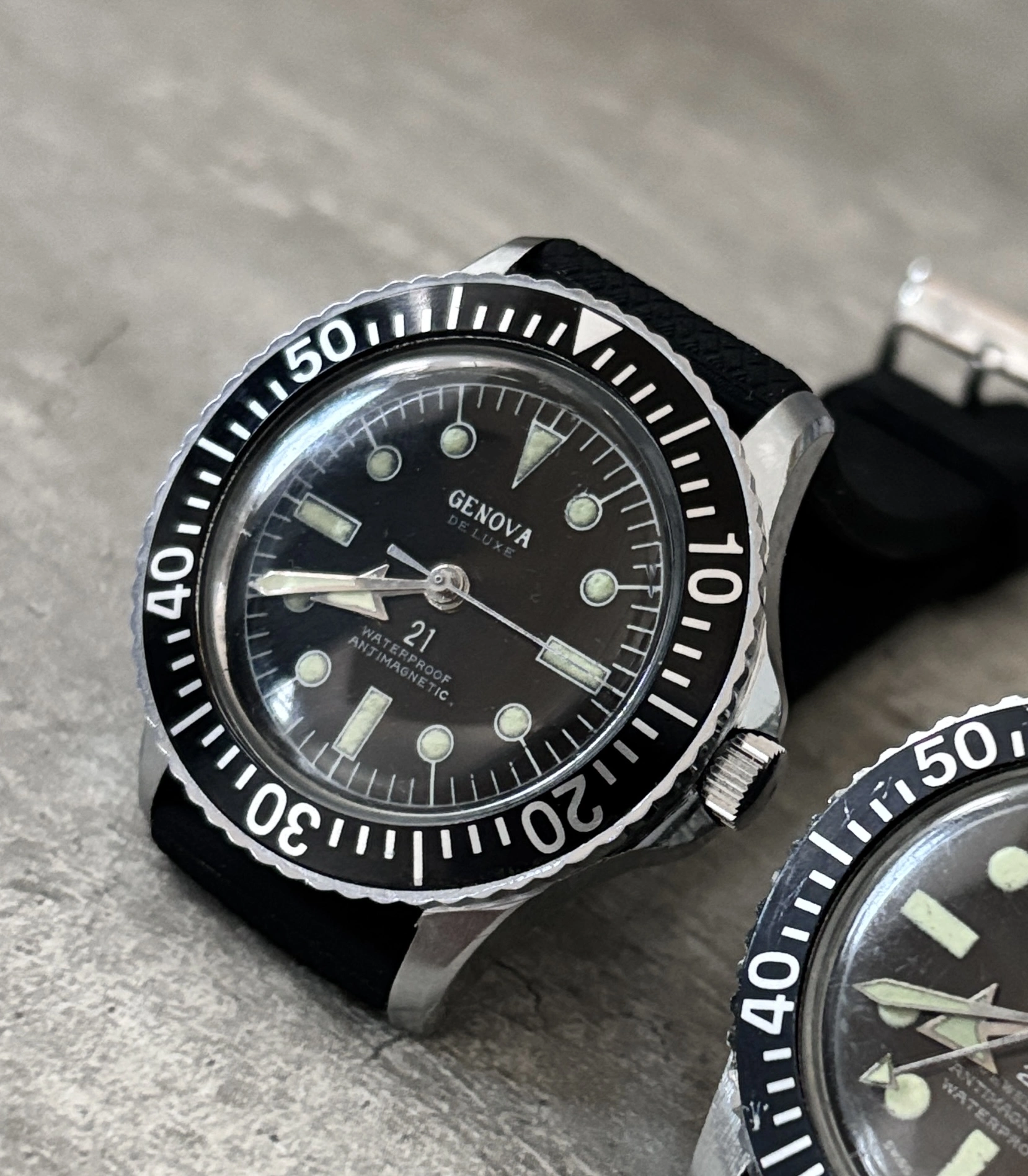 Pair of 1960’s Genova DeLuxe 21 Diver Watches