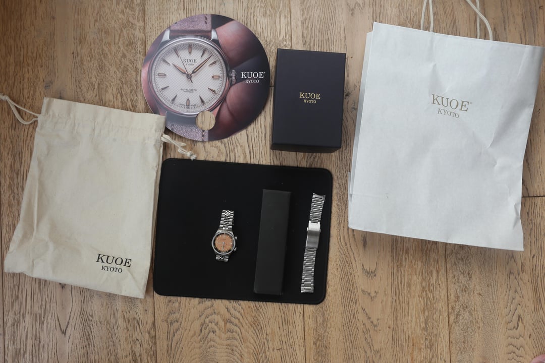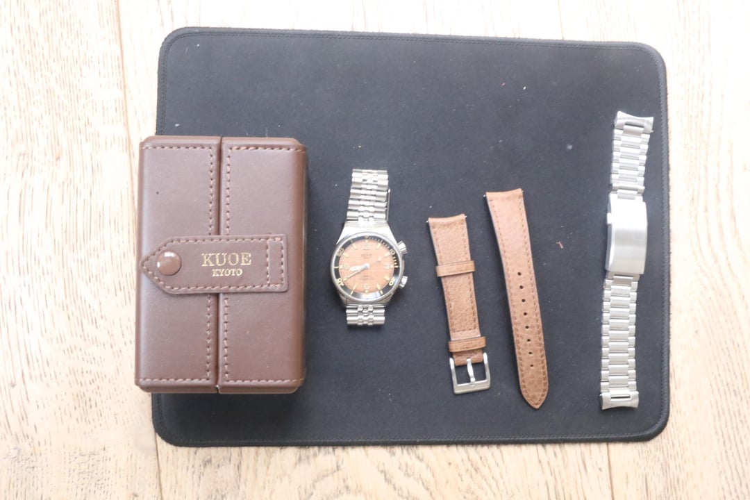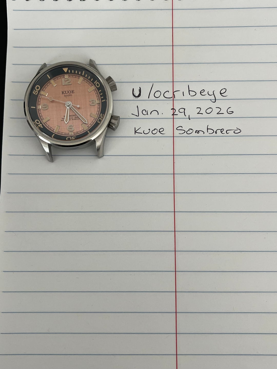 After much back and forth, I have decided to list my Kuoe Sombrero, with the salmon pink linen textured dial, for sale. This will come with the full kit, but it will include both the oyster-style (flat link) and jubilee-style (5-link) bracelets (all links will be included), as well as the unworn OEM leather strap. Specifications * Automatic with hand-wound and hacking * Miyota Japanese Movement, Cal. 9039 * Single-domed sapphire glass with AR coating and AF coating * Case: 316L stainless steel * Bezel: Internal and bidirectional * Screw-down crown * Water resistant: 20 BAR * Power reserve: \~42 hours * Super-LumiNova® hands and dial - Glows in the dark after being exposed to strong light. * Accuracy: -10 to +30 seconds per day (23º± 2ºC) * Quick-release fitted end links bracelet with a tool-less micro-adjust clasp and screw pins Asking $800 shipped (price is firm), but only within the CONUS. Not looking for trades at this time. Please let me know if you have any questions. Thanks for looking.