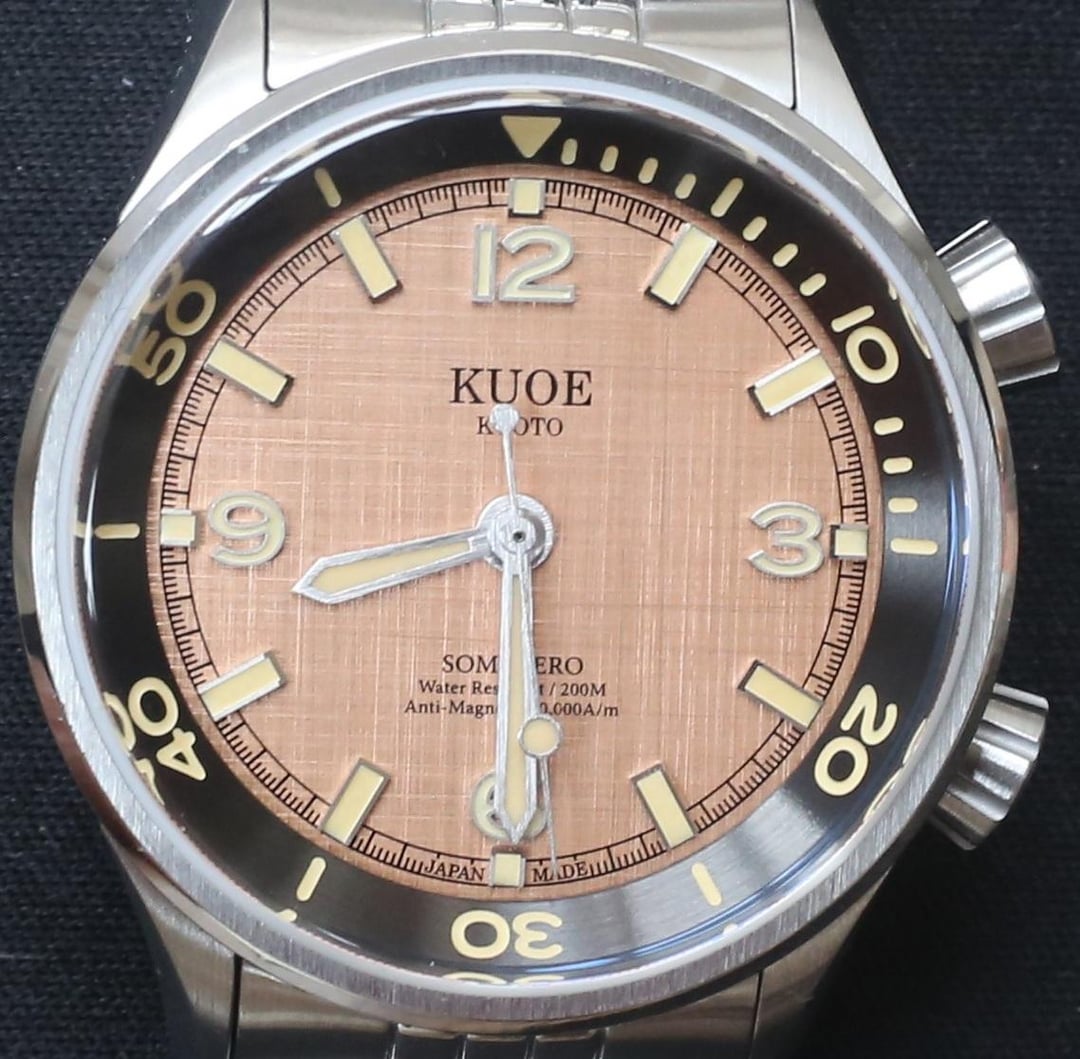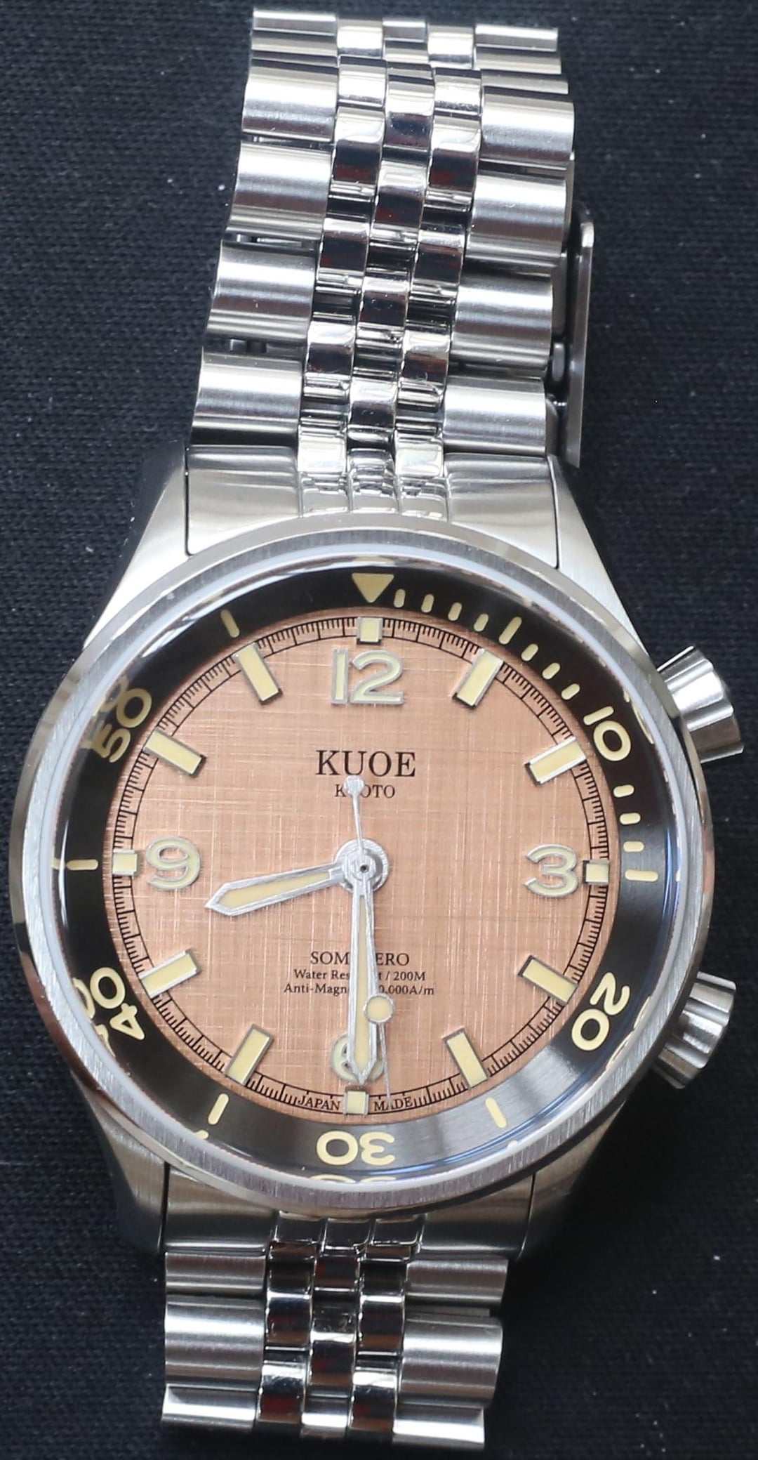 [WTS] [CONUS] Kuoe Sombrero Salmon Pink Linen Textured Dial With Both Flat Link and 5-Link Bracelets