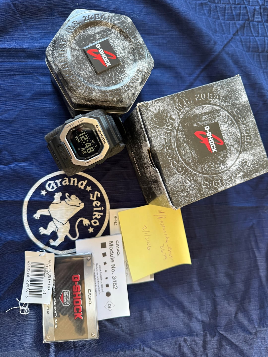 [WTS] Casio G-Shock G-Lide GBX-100 Good Condition - $120 Shipped Selling my G-Shock in good overall condition. Very light marks on the silver bezel given the close photos. Hard to see with the naked eye. Crystal is clean. Check photos for condition and what’s included. USD Price: $120 Shipped in US / No Trades Please PP, Venmo, Wire or Zelle accepted Knowledge is everything when surfing: knowing when to find the tidal push, knowing where the best surfing locations are, knowing the sunrise and sunset, and knowing how your training program can keep you at peak performance. The Casio G-SHOCK G-LIDE GBX100-1 surf watch, like many of G- SHOCK’s surf watches, has been engineered to keep you in the know so that you can maximize your passion for time spent in the water. A rugged build and sleek style make the G-SHOCK G-LIDE surf watches popular with surfers. The resin band and case and stainless-steel bezel are components of G-SHOCK’s famous shock-resistant design. The silver stainless-steel bezel surrounds an MIP LCD display, which offers high resolution for a multitude of surfing data. Tide graph and moon data are the tip of the iceberg. Explore sunrise/set times for 3,300 locations worldwide, promoting a safer surfing experience and making this Casio tide watch a necessary part of your surf kit. Staying fit is part of the surfer’s journey, and the GBX100-1 surf watch will help you get there. A step counter makes it easy to ensure you hit your movement goals, especially on the days you’re not paddling out. The Bluetooth® connection uploads training data to your smartphone such as distance, pace, and calories burned, which can be tracked using the CASIO WATCHES app. Create a training program with the app, and your GBX100-1 surf watch will monitor your progress.