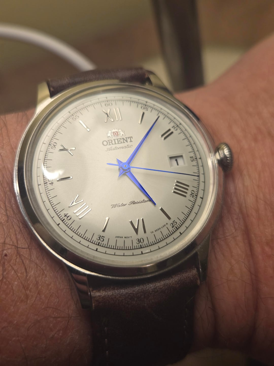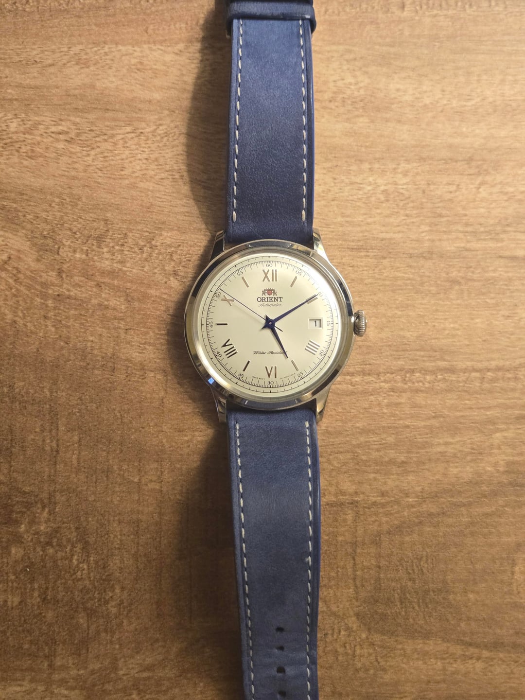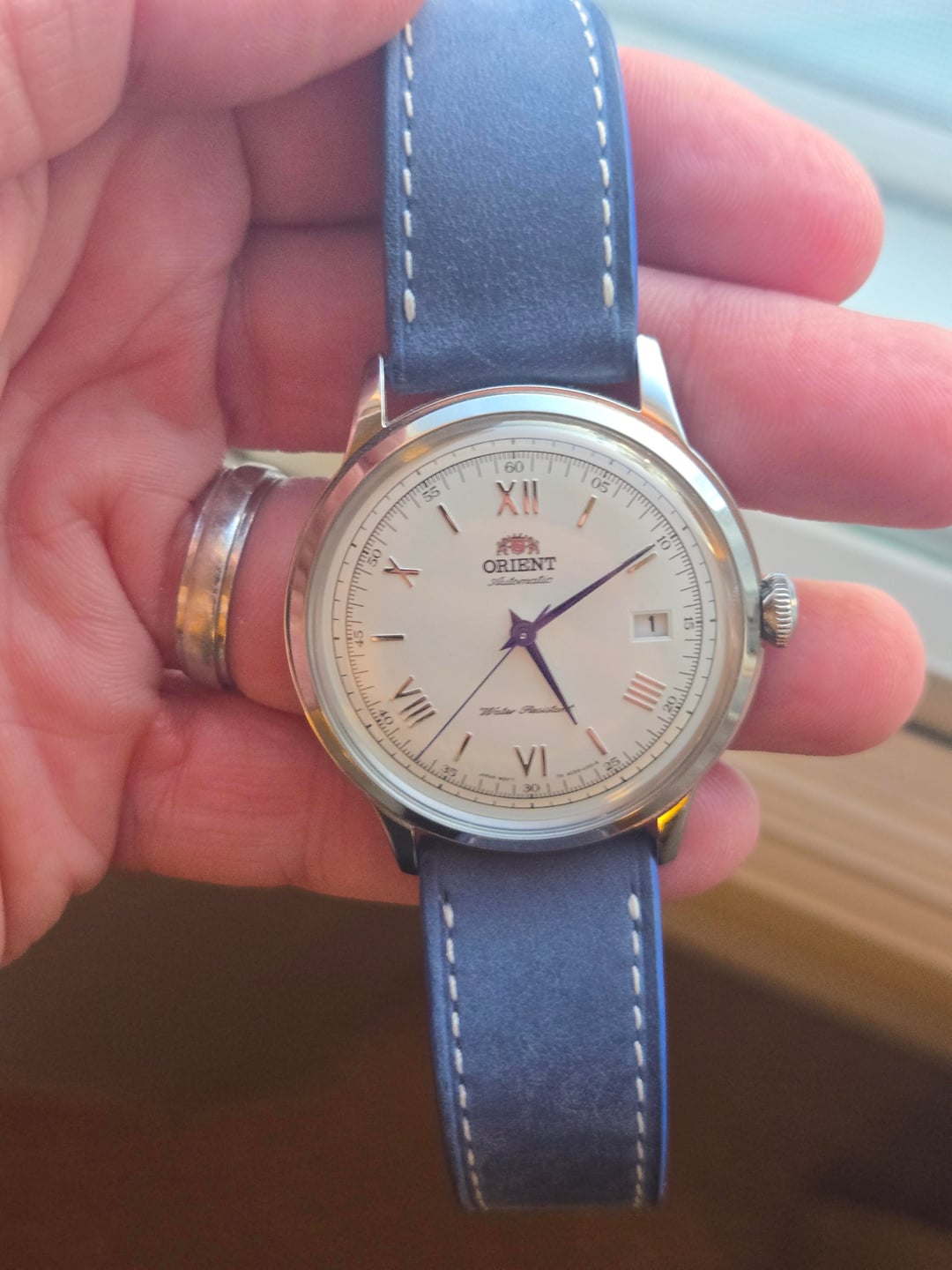 # For Sale: Orient Bambino V2 – White Dial / Blue Hands Up for sale is the quintessential value dress watch: the **Orient Bambino Version 2**. This specific model features the iconic white dial paired with polished Roman numerals and those striking blue hands that pop in the light. In my humble opinion, this is the best value dress watch you can find. While I’ve definitely enjoyed this piece and worn it numerous times, it remains in very good condition and has been well-cared for. This watch comes with the original factory leather strap (which isn't the best), along with 2 extra straps (see below). No original box or papers, but will ship with a Squale watch box. # Included Extras ($100+ Value) In addition to the full factory kit, I am including **two premium straps from Tuns Store** that fit the 21mm lugs perfectly: 1. **Nubuck Blue Leather:** Slim style, 120/70mm (M/L). Matches the blue hands perfectly for a more modern look. ($45 value) 2. **Museum Patina Brown Leather:** Padded style, 120/70mm (M/L). Provides that classic, high-end vintage aesthetic. ($55 value) # Specifications * **Movement:** Orient Cal. F6724 (Automatic, Hand-winding, and Hacking) * **Case Diameter:** 40.5mm * **Lug Width:** 21mm * **Crystal:** Domed Mineral * **Water Resistance:** 30m # Pricing & Shipping * **Price:** **$185 USD** (Covers the watch + both Tuns straps) * **Shipping:** Included in the price (CONUS) * **Payment:** Paypal FF or Venmo **Thanks for looking!** Please feel free to reach out if you have any questions or want specific photos.