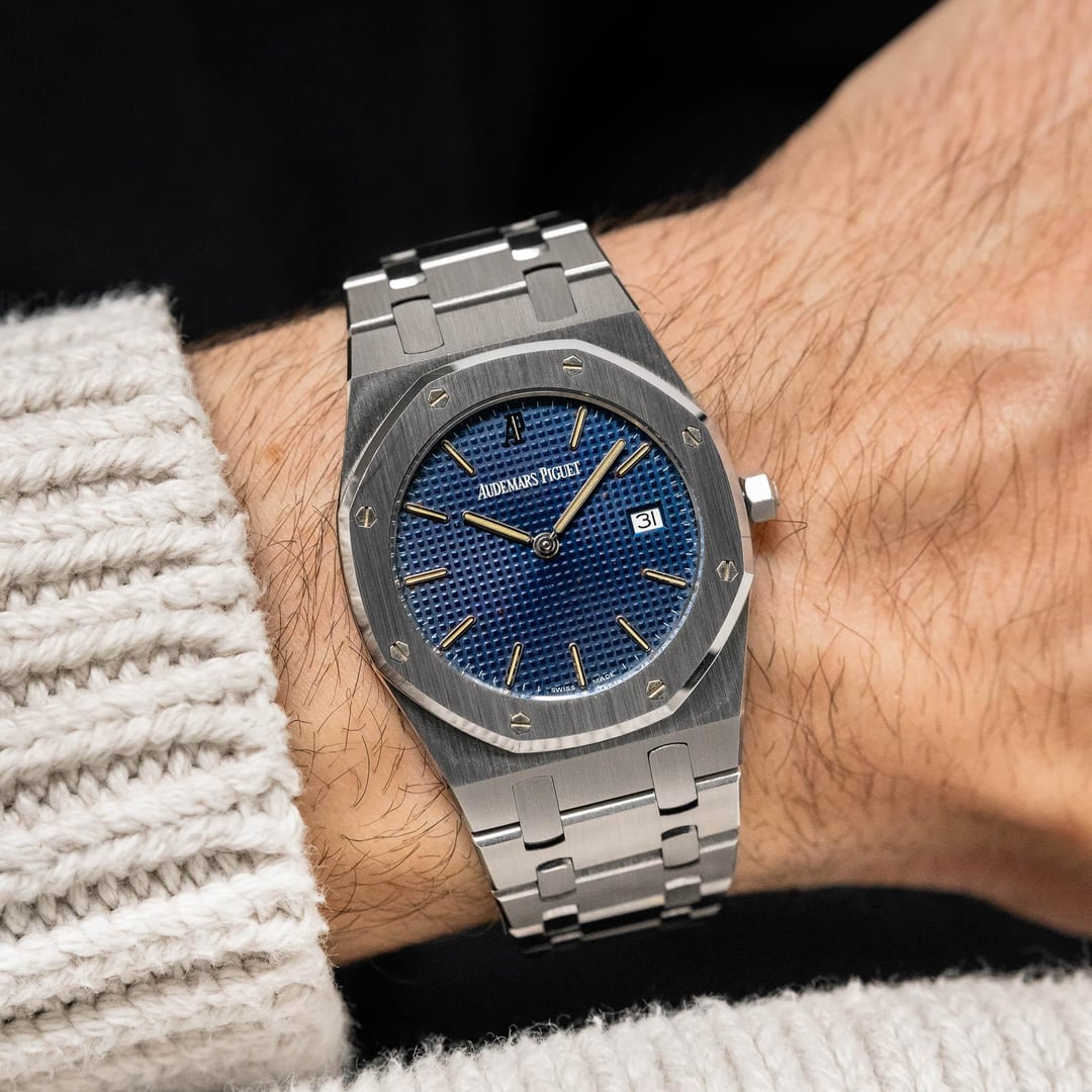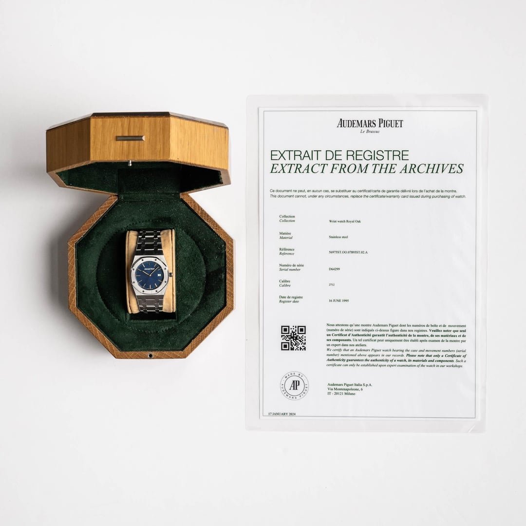 **SPECIFICATIONS** **Brand:** Audemars Piguet **Model:** Royal Oak 120th Anniversary LE **Reference:** 56975ST **Year:** 1995 **Case Number:** D64299 **Case Material:** Stainless steel **Diameter:** 33 mm **Lug Width:** 23.5 mm **Thickness:** 5.8 mm **Lug-to-Lug:** 41.8 mm **Dial:** Blue **Lume:** Tritium **Crystal:** Sapphire **Movement:** Quartz **Caliber:** AP 2712 **Bracelet/Strap:** Audemars Piguet stainless steel bracelet **Max Wrist Size:** 6.875 in (19 links) **CONDITION & PERFORMANCE** **Case:** The stainless steel case shows minimal wear with only a couple faint marks and tiny nicks present. The overall impression is very clean. The case is exceptionally sharp with superb defintion at the beveled edges. The caseback shows very light wear but remains in fantastic condition overall. The model and serial number engravings remain sharp and legible. **Dial, Hands, & Crystal:** The blue petite tapisserie dial and polished hands are in excellent condition with a few micro signs of oxidation present, which is common for Royal Oak dials from this era. The tritium across the dial and hands is free of cracking and is a consistent shade that glows briefly when exposed to UV light. The sapphire crystal is squeaky clean and scratch-free. **Bracelet/Strap:** The Audemars Piguet stainless steel bracelet is in fantastic condition with virtually no stretch and hardly any signs of wear present. All of the links are matching, but two near the clasp use the single-sided screw design, while the rest use the double-sided screw design. This does not affect wear or sizing at all. The sliding clasp button works, but requires an extra push to fully lock into place. The engraved AP logo remains crisp and detailed. **Timing & Functions:** The watch has been manually observed over a 24-hour period and is keeping accurate time. All functions including the crown winding, time setting, and date changing are working as expected. **Service History:** Unknown. **WHAT'S INCLUDED** \- Audemars Piguet Royal Oak 120th Anniversary LE on a stainless steel bracelet. \- Wooden Royal Oak box. \- Audemars Piguet Extract From the Archives. Timestamp: [https://imgur.com/a/IA3yQlq](https://imgur.com/a/IA3yQlq) **PRICE & DELIVERY** I'm asking **$23,300** net to me via wire transfer, Zelle, or PayPal + fees. The price includes expedited shipping via FedEx within the U.S. and internationally. No trades. Feel free to reach out with any questions!