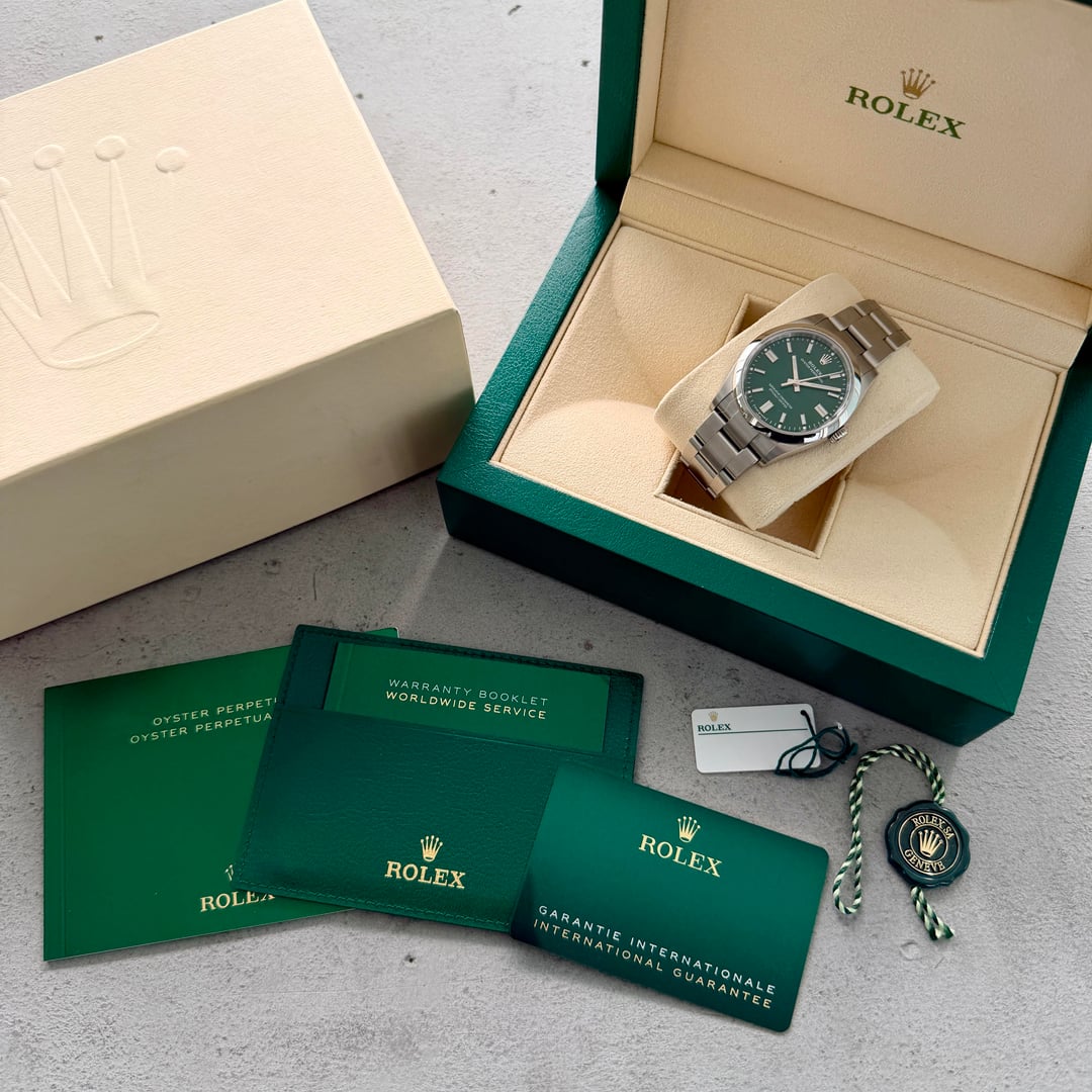 [WTS] Rolex 36mm Oyster Perpetual 126000 Oyster Green dial – Box / Papers