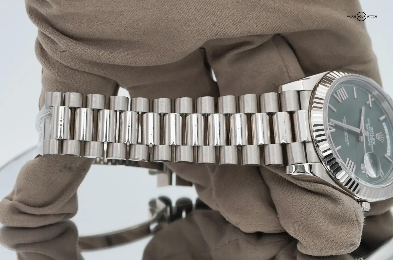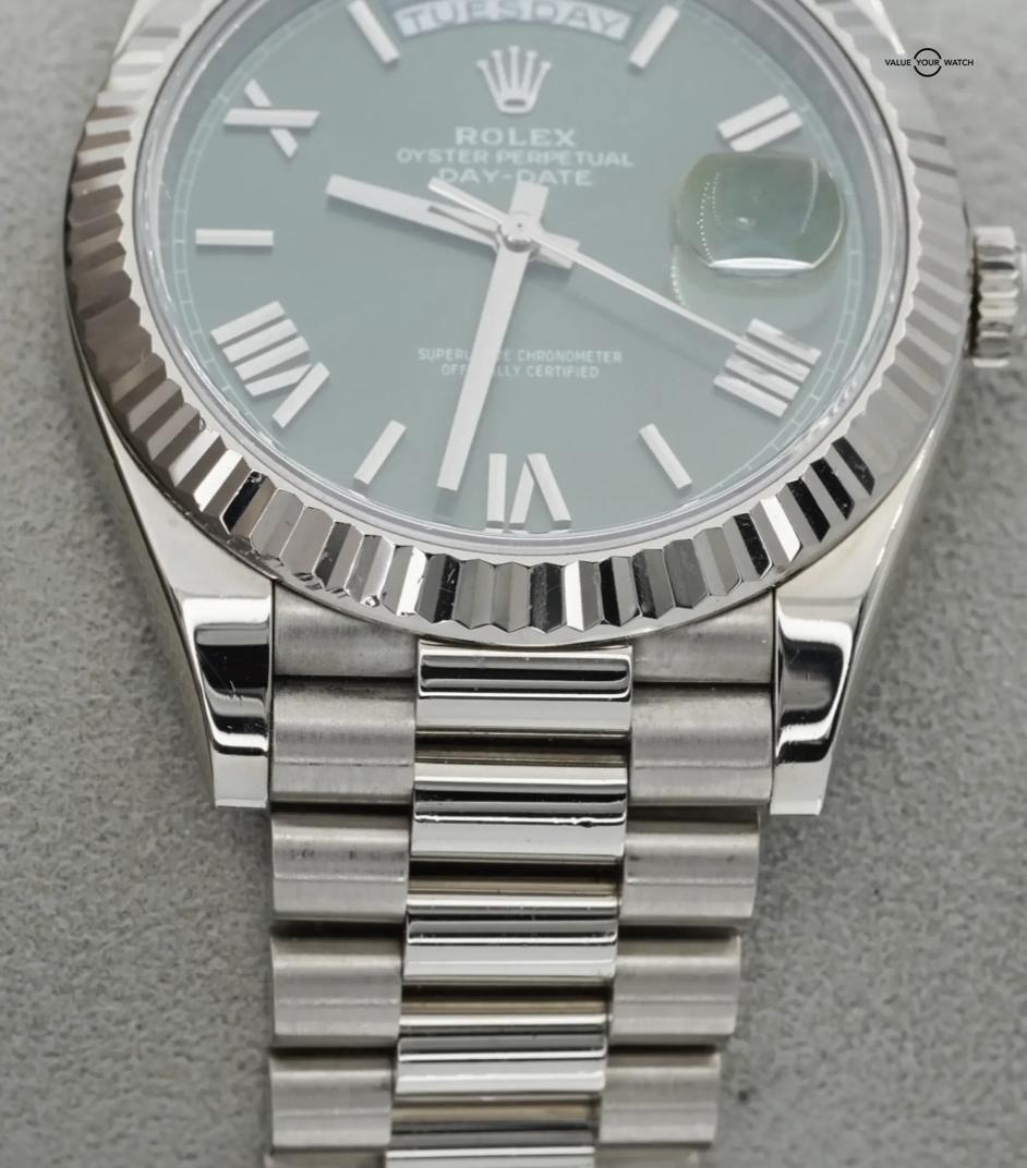 FS: Rolex Day-Date President 228239 40mm OLIVE dial 18K White Gold Box/Papers!
