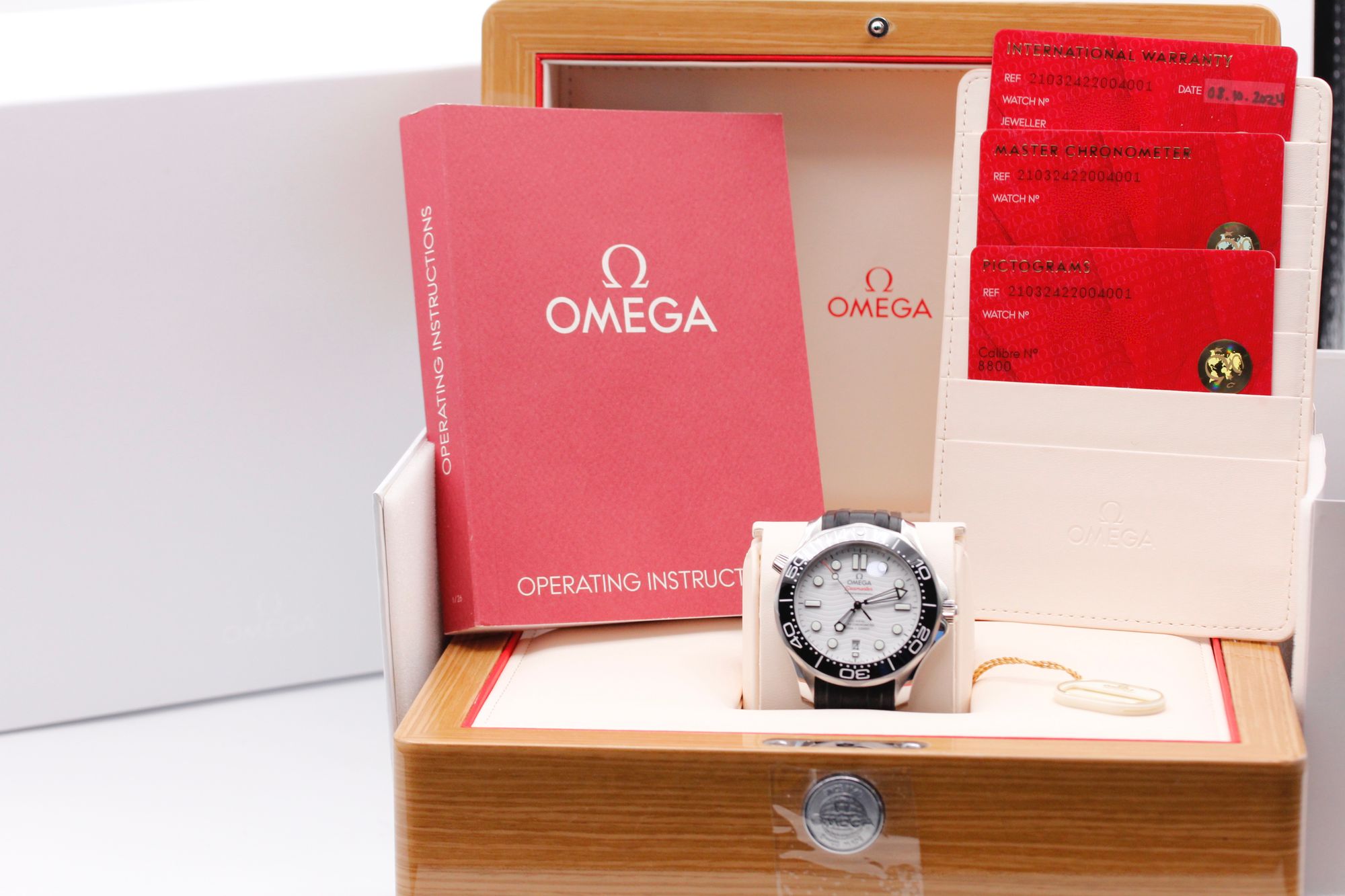 Brand: Omega Model: Seamaster Diver 300M Case Size: 41mm Condition: Pre-Owned Grade: Mint Bracelet Type: Rubber Material: Stainless Steel Dial: White Age: Modern Movement: Automatic Papers: Yes Box: Yes Reference: 210.32.42.20.04.001 Additional Notes: Warranty Dated - August 2024