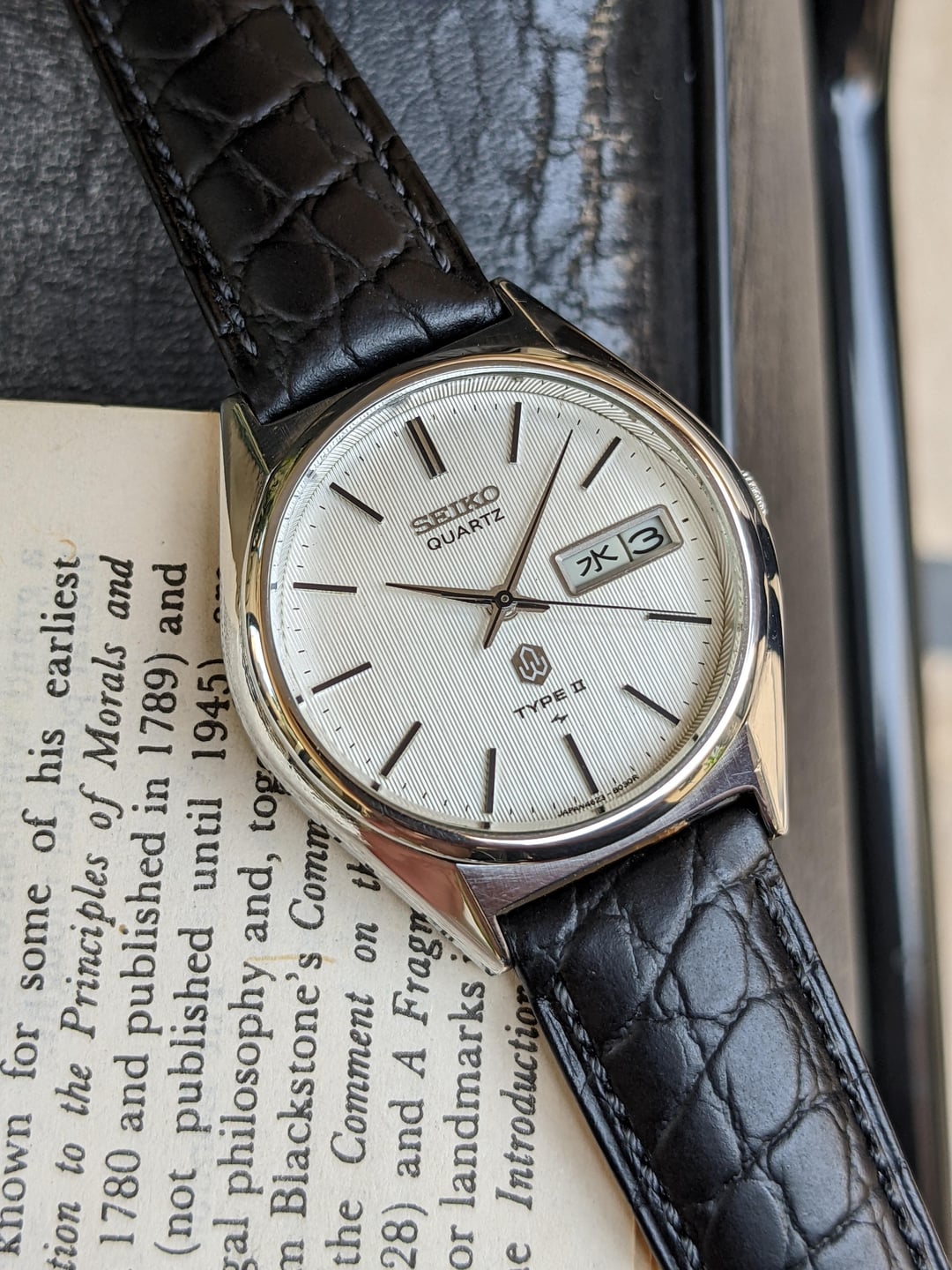 español![[WTS] Seiko Type ll in Vertical Stripes Dial from March 1977 🗓️ for sale 💵 $165 (Shipped)🚢 Video Attached 📽️ 1](https://cdn-cf.watchpatrol.net/600x600/img/full/6a01d3fafa40b6058bd3955ae9a502aff079aad0.jpg)