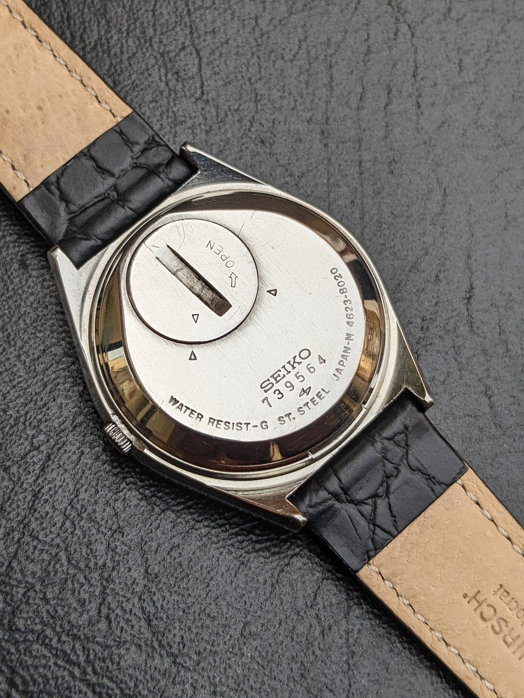 Greetings, Up for sale is a beautiful Seiko Type ll Quartz reference # 4623-8020. Watch runs on a quartz movement cal 4623. Watch features a beautiful vertical stripes dial with English and Kanji Day Wheel. Watch has a stainless steel case that measures to be 36.5mm, lug width of 18mm, and lug-to-lug length of 41mm. Watch is on aftermarket Hirsch leather strap. New battery installed. The overall condition of the watch is great. Kindly watch the following video for better understanding Watch Overall Condition https://imgur.com/a/ihduTm1 Timestamp https://imgur.com/a/rGfRqvU ⚠️ Please comment before sending inbox. ⚠️ Do see my other listings for more vintage watches. ⚠️ Please be free to ask questions if you have any. Watch is priced to sell at $165 with free worldwide shipping. Watch will be tracked shipped. I'm always open to offers. All sales are final. Payment through Zelle, Wise and PayPal (F&F only). Interested buyers can ask for custom photos/videos and timestamp. Follow me at Instagram https://instagram.com/vintaj_souls?igshid=MzNlNGNkZWQ4Mg==