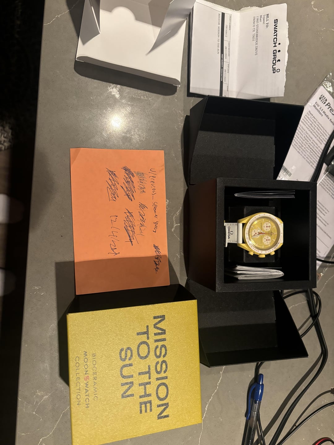 Omega X Swatch Mission to Sun ☀️ • Price: $225 • Condition: Pre-owned. Full set • Details: Omega X Swatch Mission to Sun, part of the iconic MoonSwatch collection. Features a bright yellow Bioceramic case, quartz movement, and vibrant design inspired by the Sun. Complete with box, papers. • Payment: Zelle, Venmo, Cashapp, PayPal FF (Friends and Family). • Location: East Lansing, MI • Shipping: CONUS shipping included in the price. • Trades: Not accepted at this time.