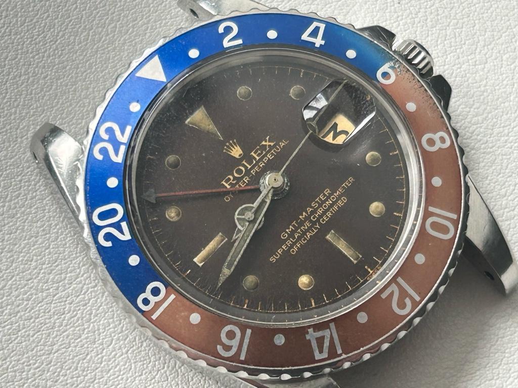 | 1973 Vintage Rolex GMT 1675 w/ Fat Font Ultra-Rare Burgundy + Ghost Grey Bezel master_bezels (22) |