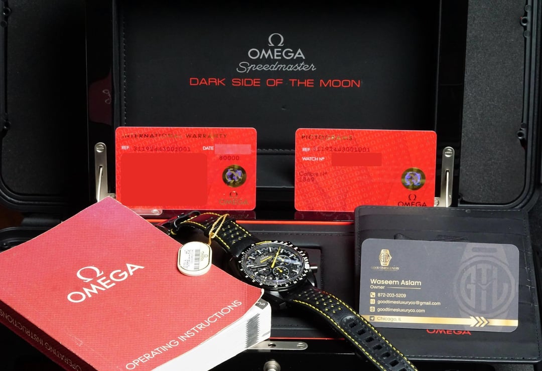 - TIMESTAMP: https://imgur.com/a/Hr4dM13 🚀FOR SALE: Omega Speedmaster DSOTM Apollo 8🚀 🕰️ Condition: Slider (Can pass as New) 💳 Warranty Card: AD Stamp. No Date 📦 Includes: Inner Box, White Tag, warranty, Pictograms, User manual ✨ Features: - Model Ref: 311.92.44.30.01.001 - Ceramic case with a sleek black finish - Yellow accents for a pop of color - Manual winding with 48-hour power reserve - Sapphire crystal for scratch resistance - Water resistance of up to 50 meters Omega Speedmaster Dark Side of the Moon Apollo 8 watch! This stunning timepiece is inspired by the iconic Apollo 8 mission and features a beautifully detailed skeleton dial displaying the lunar surface. It's perfect for watch enthusiasts or anyone who appreciates exceptional craftsmanship. 💰 Price: $7,845 via Wire/Zelle/Crypto 📍 Location: Chicago, IL 📩 Contact: - 📞 Call/Text/Whatsapp: 872-203-5209 - 📸 Insta: @goodtimesluxury - 🟦 FB: waseem.aslam.31586 (Meta Verified) About me 🙋🏻♂️: My name is Waseem Aslam, Owner of Good Times Luxury and Moderator for Watch Trader Community FB group. Please don’t hesitate to contact me with any questions. I’m proud to provide a top-notch buyer experience. I’ll happily provide more information/pictures/videos until you’re confident in your purchase. Thank you!