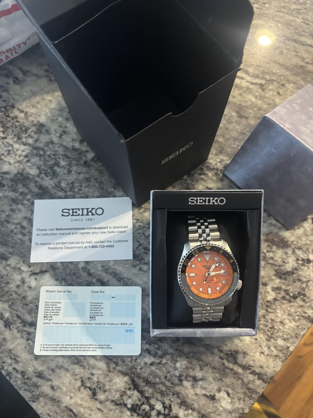 [WTS] Seiko 5 GMT SSK005 • Price: $235 • Condition: Pre-owned. • Details: Seiko 5 Sports GMT reference SSK005. Features a 42.5mm stainless steel case, automatic movement, and a champagne-colored dial with red GMT hand. Includes original box and papers. • Payment: Venmo, Cashapp, PayPal FF (Friends and Family). • Location: East Lansing, MI • Shipping: CONUS shipping included in the price. • Trades: Not accepted at this time.