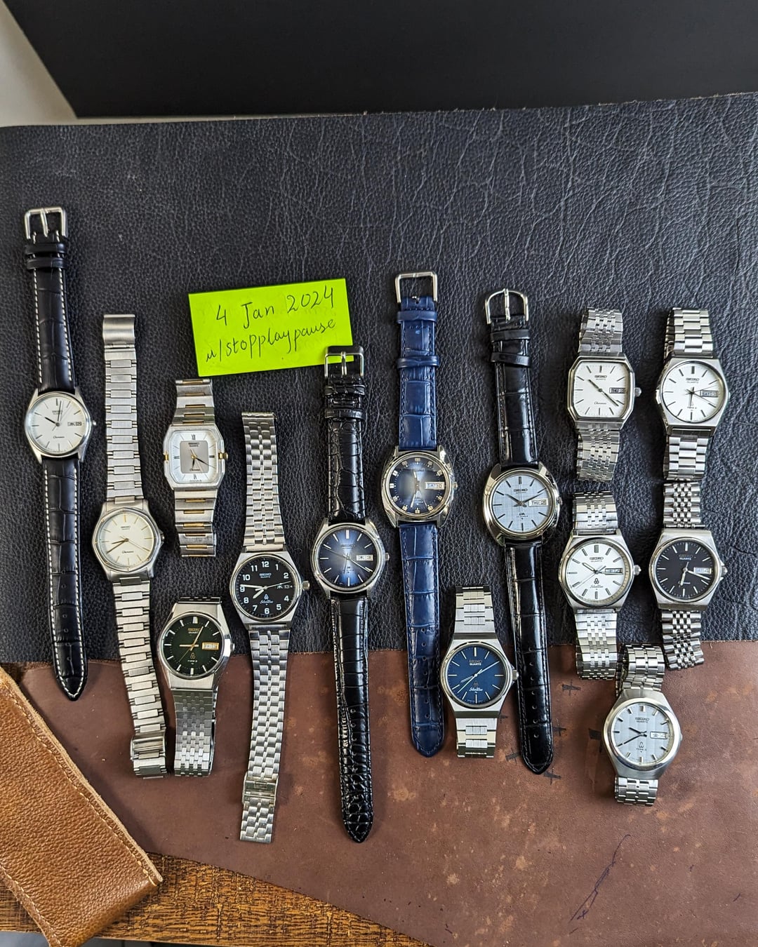 Hey WatchExchange fam! Good to be back and posting in 2025!! Happy new year to all of you :) * *Accepting payments with PayPal G&S and Wise. Returns accepted outside of buyers remorse.* * *$12 shipping charges apply for fully tracked express shipping to your door.* Here are brief details on the watches respective to their picture number in the post. 1. Timestamp 2. Seiko Chronos White Dial with Kanji Day - $75 3. Seiko Chronos Santos Homage Textured Dial - $139 4. Seiko Chronos Two Tone with Roman Dial - $139 5. Seiko Type-II Quartz Leaf Texture Dial with Kanji Day - $199 6. Seiko Quartz SilverWave Field Watch with Kanji Day - $125 7. Seiko Lord Matic Blue-Black Gradient Dial Kanji Day - $219 8. Seiko Lord Matic Blue Gradient Dial Broad Case & Kanji Day - $245 9. Seiko Quartz SilverWave Navy Blue Dial & No Date - $149 10. Seiko Lord Matic Automatic Linen Dial Day Date & C-Shaped Case - $269 11. Seiko Chronos Octagonal TV Case with Radiator Pattern Dial & Day Date - $149 12. Seiko Quartz Silverwave 3D Textured Dial with Lumed Hands and Markers & Kanji Day - $165 13. Seiko Quartz Silver Stripes Dial with Kanji Day- $119 14. Seiko Quartz Type-II Hexagonal Case & Brushed Dial with Kanji Day - $139 15. Seiko Chronos Black Tapisserie Dial wuth Kanji Day - $149