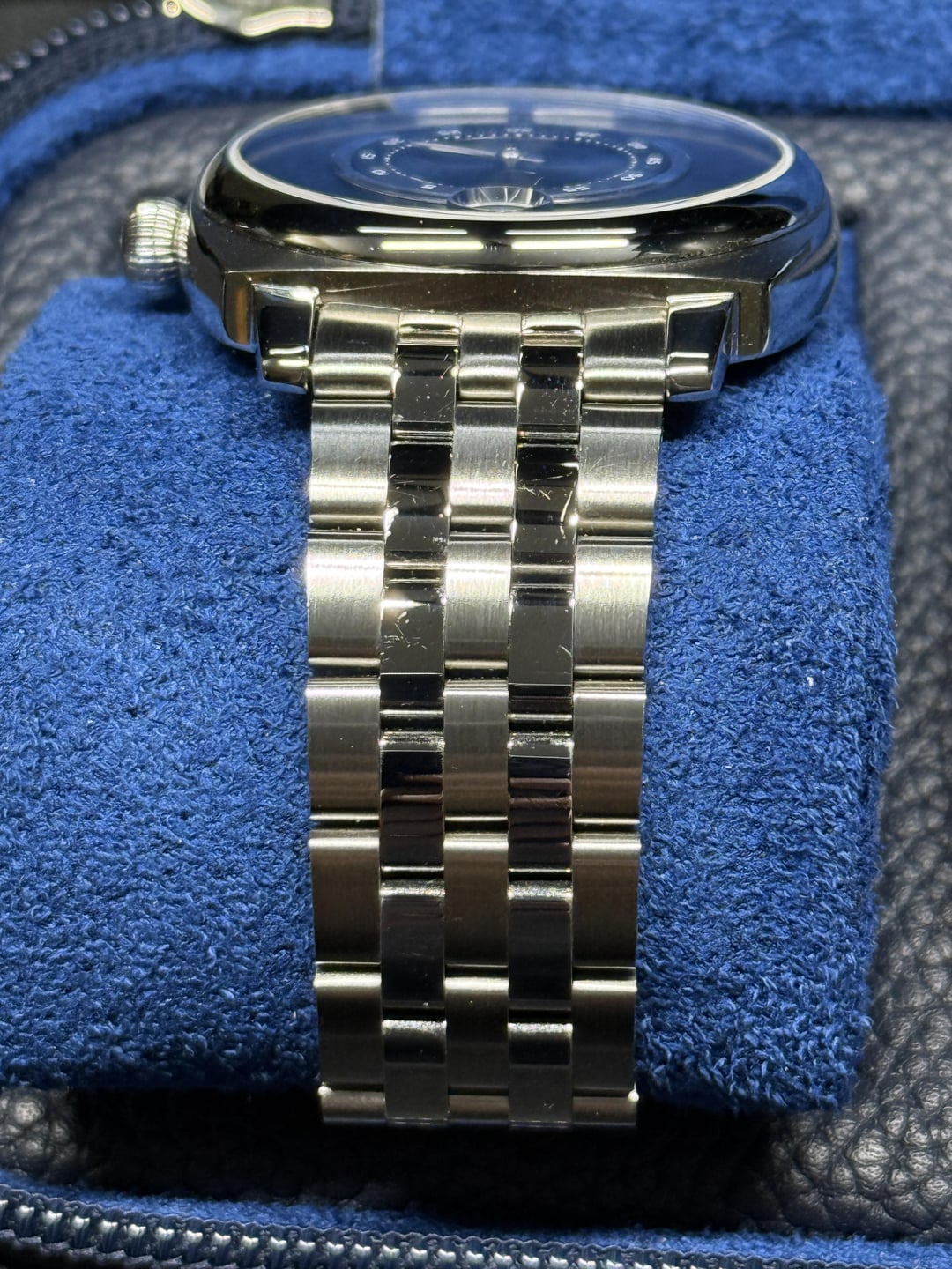Hi all Purchased new a few weeks back. Have been wearing it a few times since. It's such an AMAZING dial and watch. Fits super comfy on the wrist. I got both the bracelet and the Raven Black leather band and they both look and feel great. I've included a bunch of pics of the bracelet as well as it has normal wear from the few times I've worn it so please look at the pics. Come with everything shown in the pics which is everything it comes with via retail. Not for nothing but the box is this awesome solid sculpted wood coffin like holder for the watch. Super beautiful and very well-made. Just a very impressive package overall. And its got the Christopher Ward jump hour movement in it so its well made on the inside as well. Kills me to sell this one right now, but I'll have a chance at buying one again in the near future and I will for sure. $4150 shipped CONUS only. ZELLE or PayPal F&F. If you want G&S you will have to pay the 3% PayPal charge on top of the price. I am trying to help you avoid that extra charge by you being able to go view my eBay shop (offtherakcollectibles) and read the feedback I’ve gotten there but it is totally your call. My store has 100% feedback rating and I’ve sold hundreds of items over the years. Please take some time to read them so you are comfortable knowing I am transparent and honest. Always happy to take more pics, video etc to make you comfortable. Please also see my transactions here on watchexchange so take the opportunity to read feedback here as well. Please leave a comment here and message me with any questions and/or if you’re interested. Thanks!